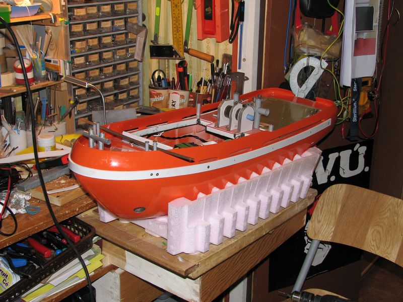 Protože trup byl olaminován bez otěrových lišt a nárazníků, bude potřeba je k trupu přidělat.
