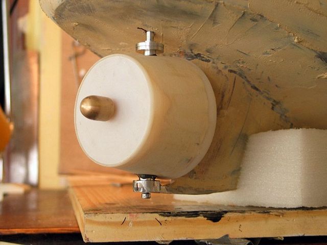 půjde hřídel a hle, vše klaplo. Odvrtal jsem otvor pro pouzdro hřídele. Umístil sestavenou dýzu, která měla z obou stran pasovací