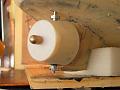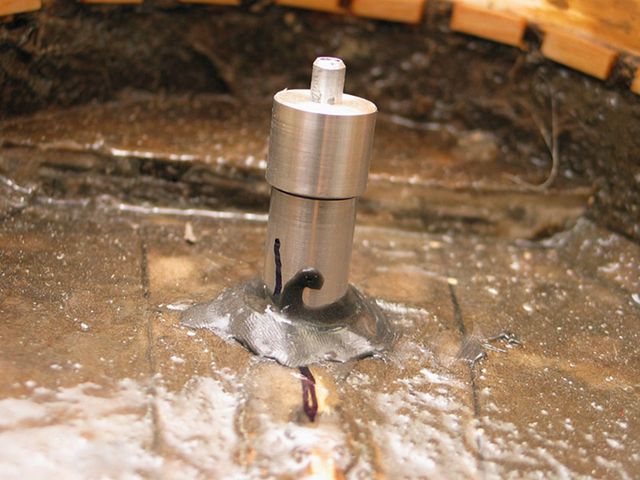 dřevěné laťky. Zhotovil jsem těsnící límec a vlepil. Předtím jsem však v místě, kde je podlouhlý otvor pro odtok vody nařízl bort
