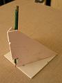 knihařskou lepenku 1500 g na m2. Vždy jsem slepil dva archy k sobě disperzním lepidlem. Aby se lepenka nekroutila