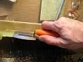 nutno čepel ostřit nebo vyměnit. Otvory pro usazení kýlu jsem vysekával ostrým dlátem. Jde to rychle a hrany jsou rovné a čisté,