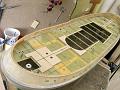 Z uschované šablony jsem si vytvořil novou dvoudílnou, dělenou podél. Důvod je ten, abych mohl vytvarovat palubu jak v příčném tak i podélném směru. Po přesném zhotovení