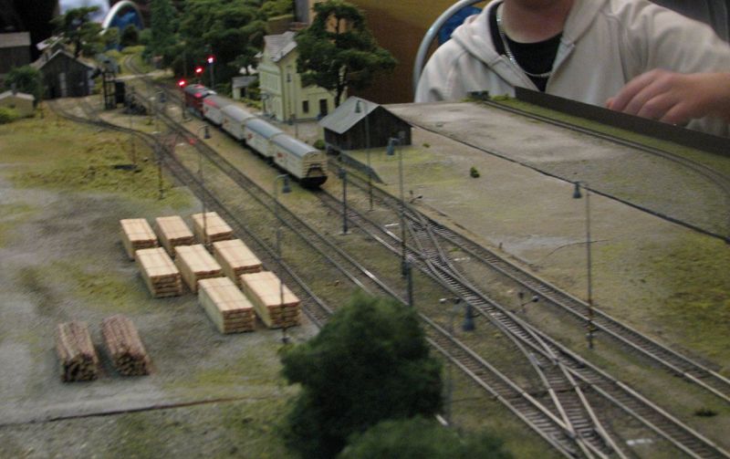 V kulturním sále byl dav lidí, přes které modulové kolejiště nebylo i přes svoji délku dvaci pěti metrů ani vidět. Protože jsem chtěl nafotit několik snímků, požádal jsem kamaráda Karla Bartáka, který je členem vystavujícího klubu a zrovna obsluhoval jednu koncovou stanici, aby mi umožnil přístup do zákulisí, což ochotně udělal. S radostí jsem odložil bundu a tašku a dal se do focení...