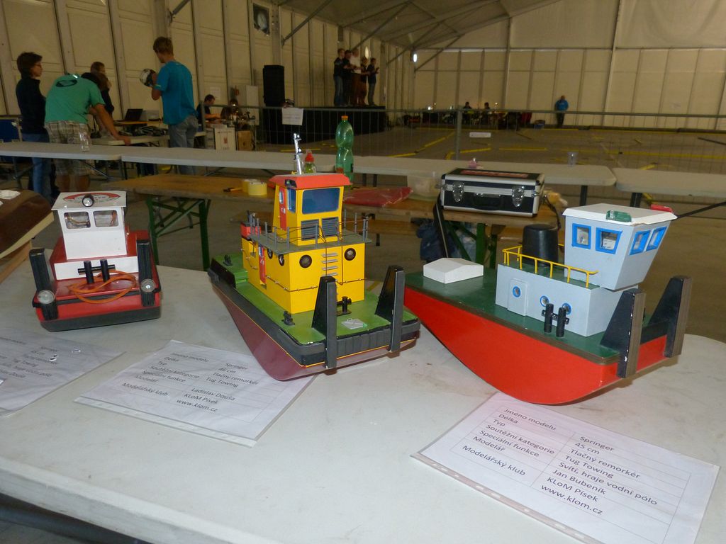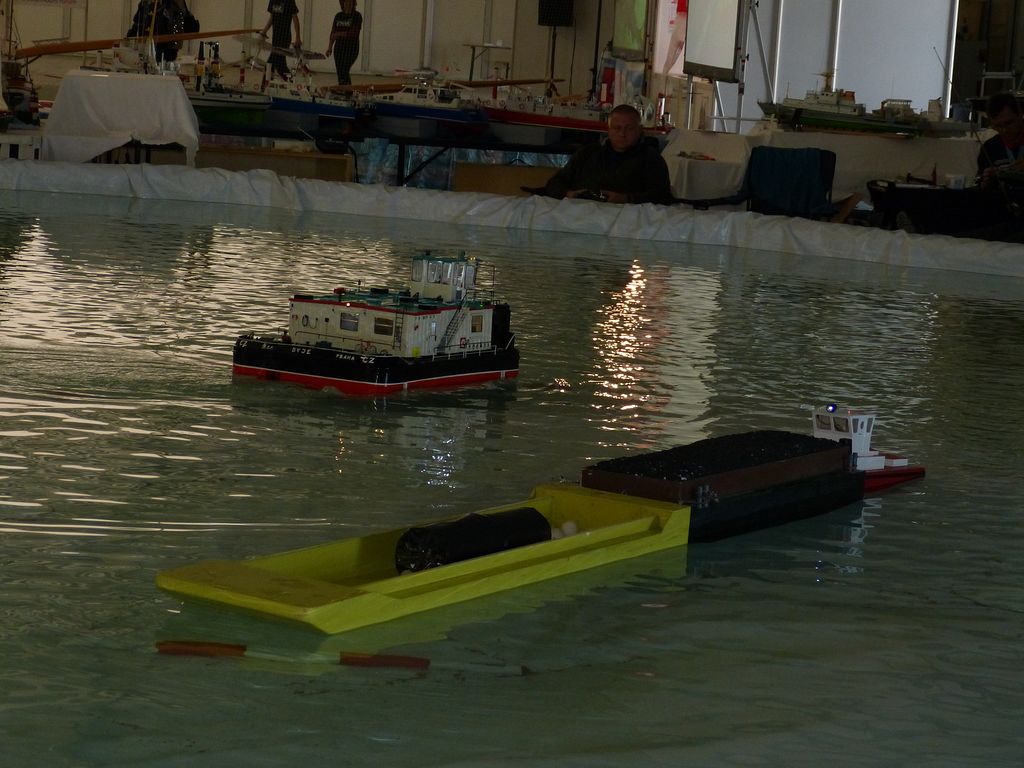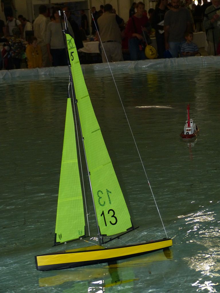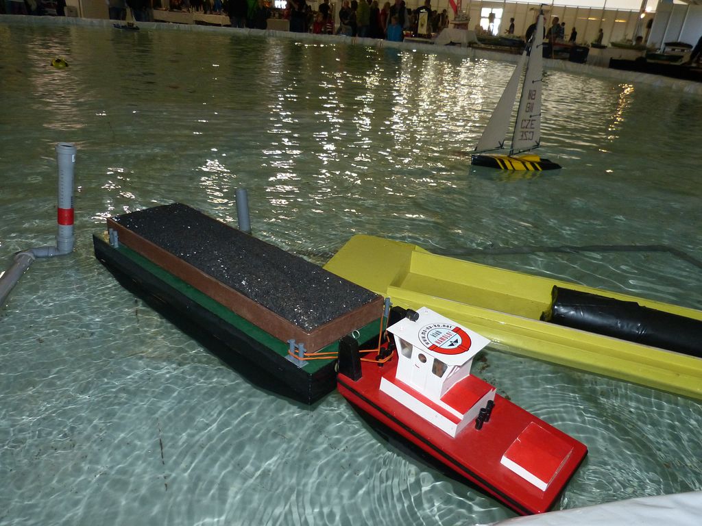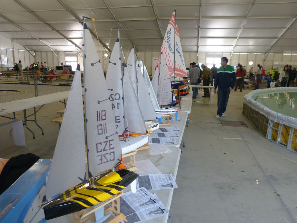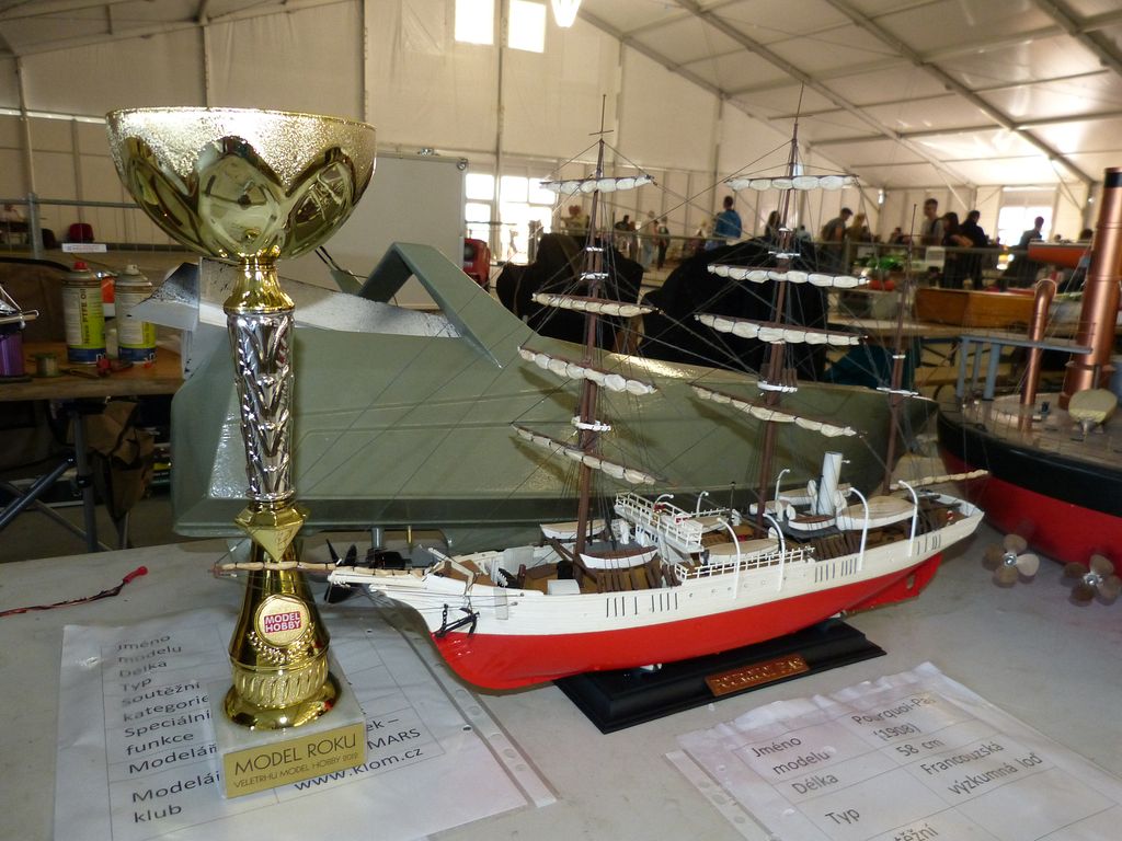 Celovíkendovou pomocí nám byla účast RC Klubu SIG-N.A.L. Třebíč, jehož členové své modely předváděli bez velkých prostojů podobně jako němečtí kolegové. Za KLoM Písek přímo z Marsu dorazil Petr Hájek, který měl být u bazénu po celou dobu veletrhu jako můj pobočník číslo jedna a který musel dát na poslední chvíli přednost pracovním záležitostem. Aby vše napravil, naložil do svého vozu vše, co pobral: Dozer, Novgorod, Springer... a také malou historickou plachetnici Pourqua Pas, jež se k našemu naprostému úžasu stala držitelkou ocenění