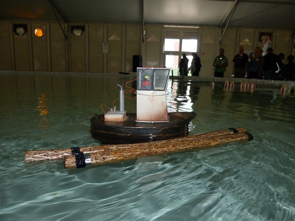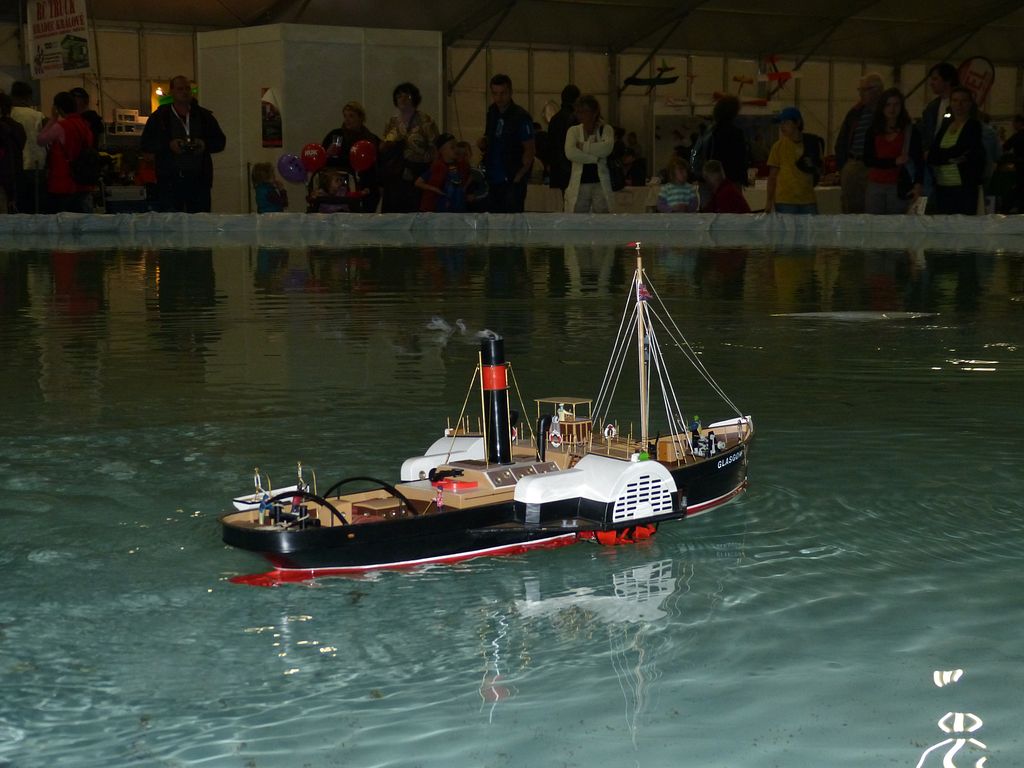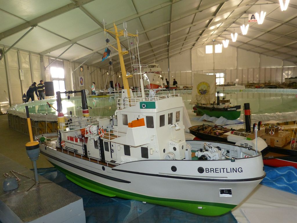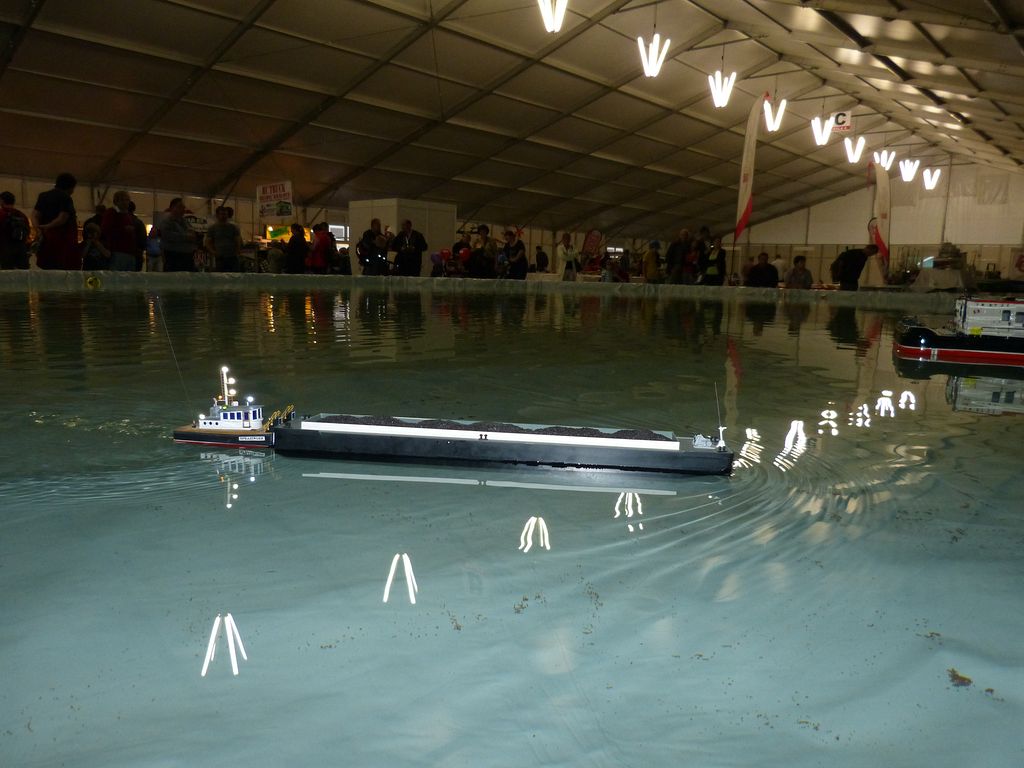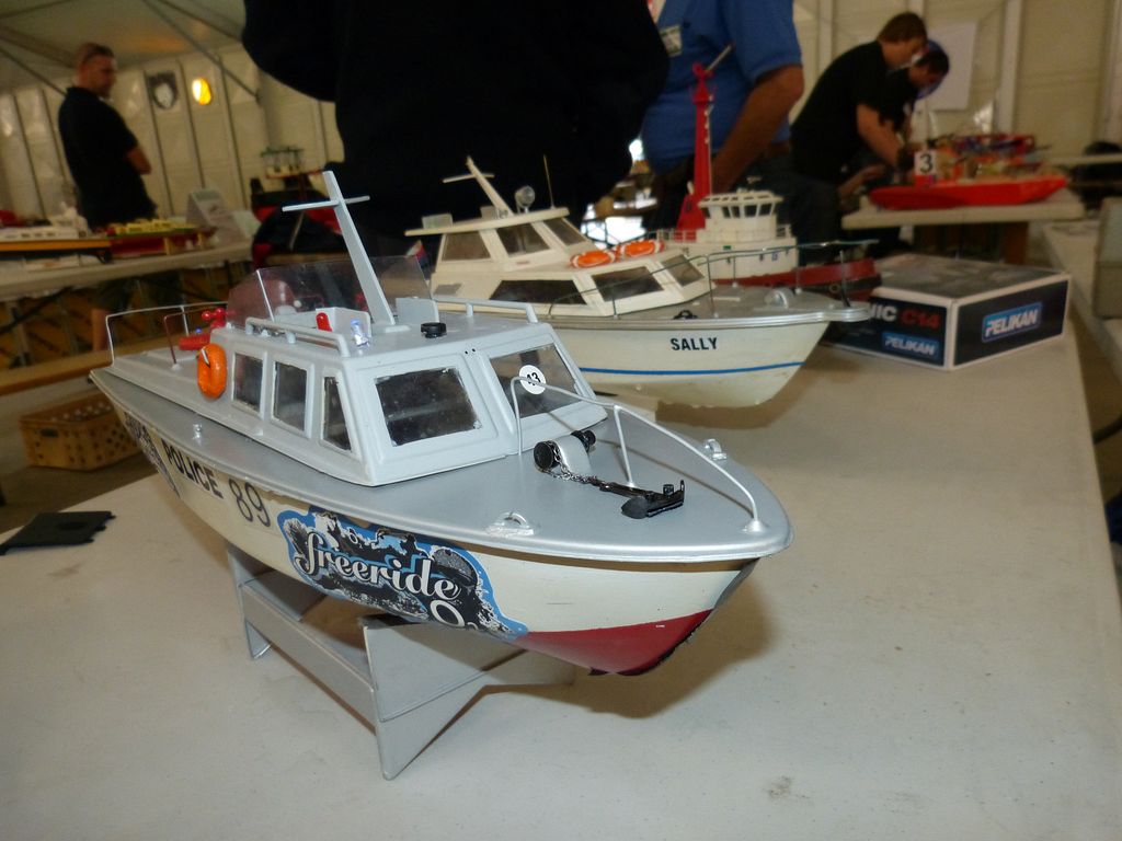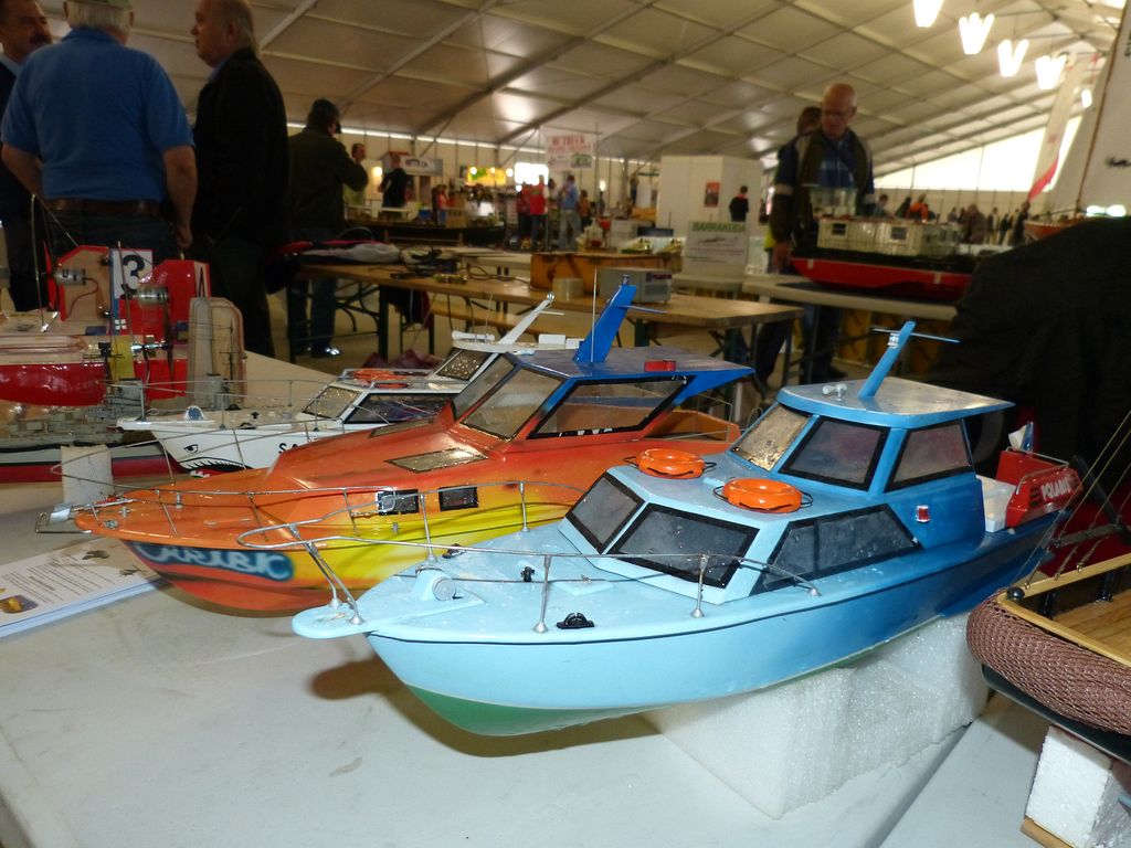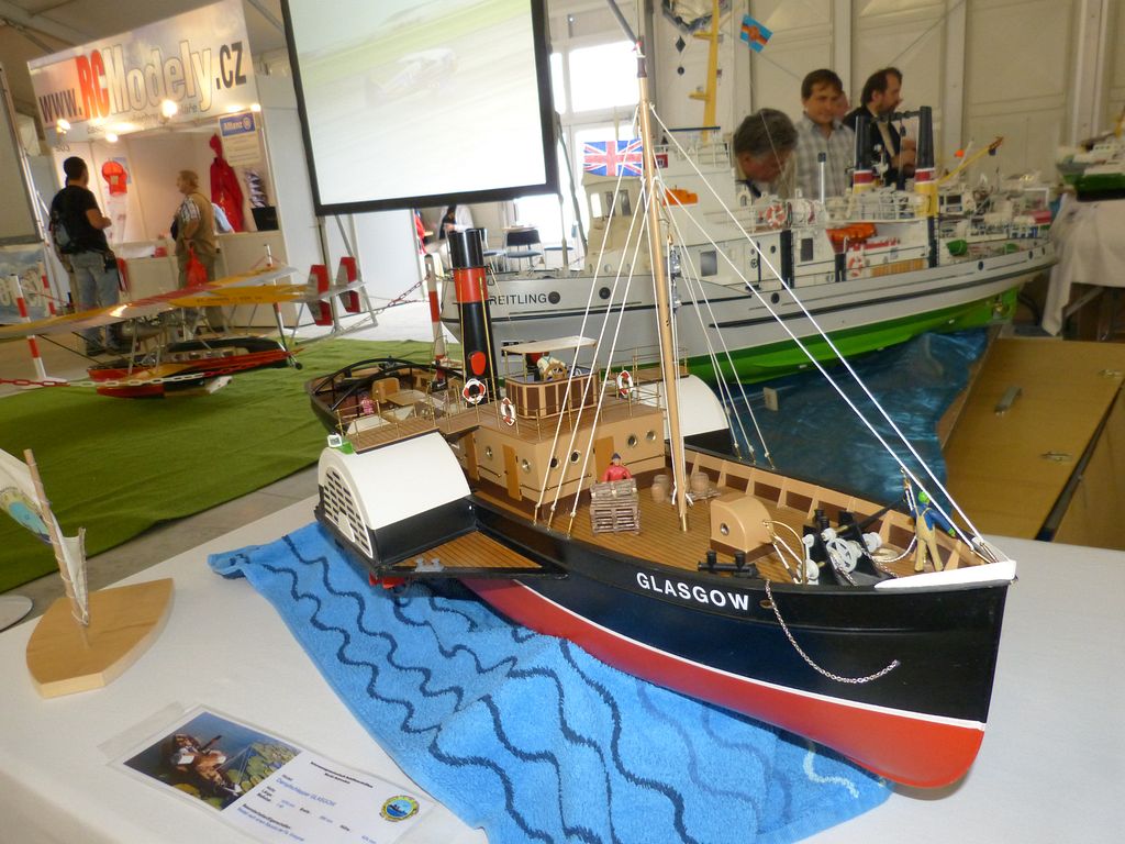 Celovíkendovou pomocí nám byla účast RC Klubu SIG-N.A.L. Třebíč, jehož členové své modely předváděli bez velkých prostojů podobně jako němečtí kolegové. Za KLoM Písek přímo z Marsu dorazil Petr Hájek, který měl být u bazénu po celou dobu veletrhu jako můj pobočník číslo jedna a který musel dát na poslední chvíli přednost pracovním záležitostem. Aby vše napravil, naložil do svého vozu vše, co pobral: Dozer, Novgorod, Springer... a také malou historickou plachetnici Pourqua Pas, jež se k našemu naprostému úžasu stala držitelkou ocenění