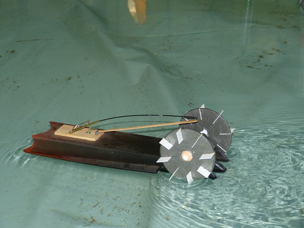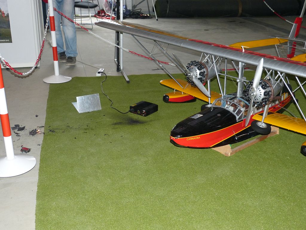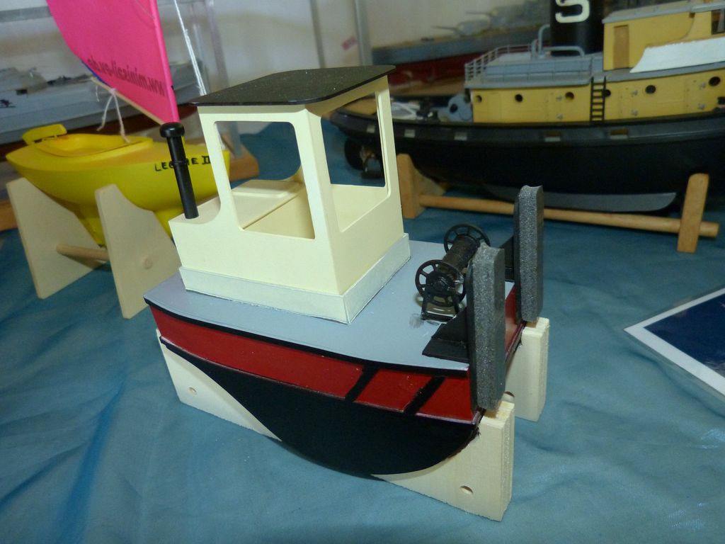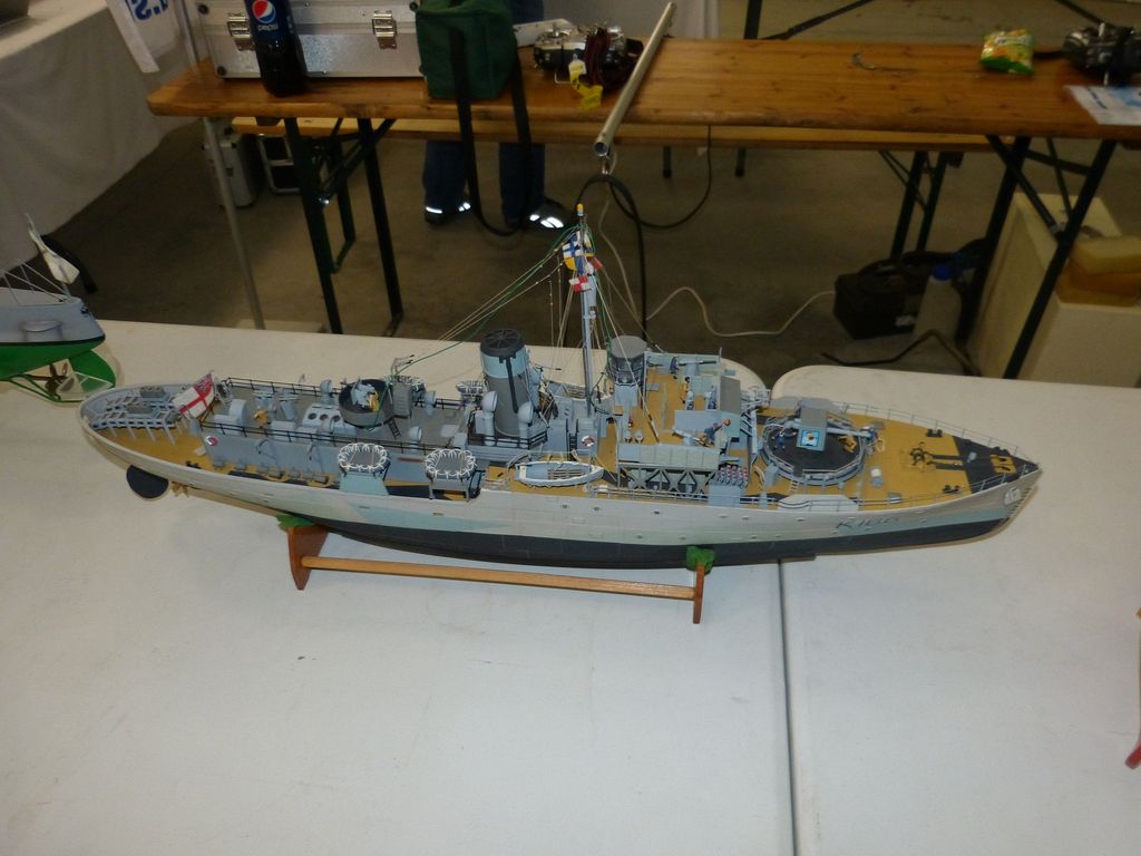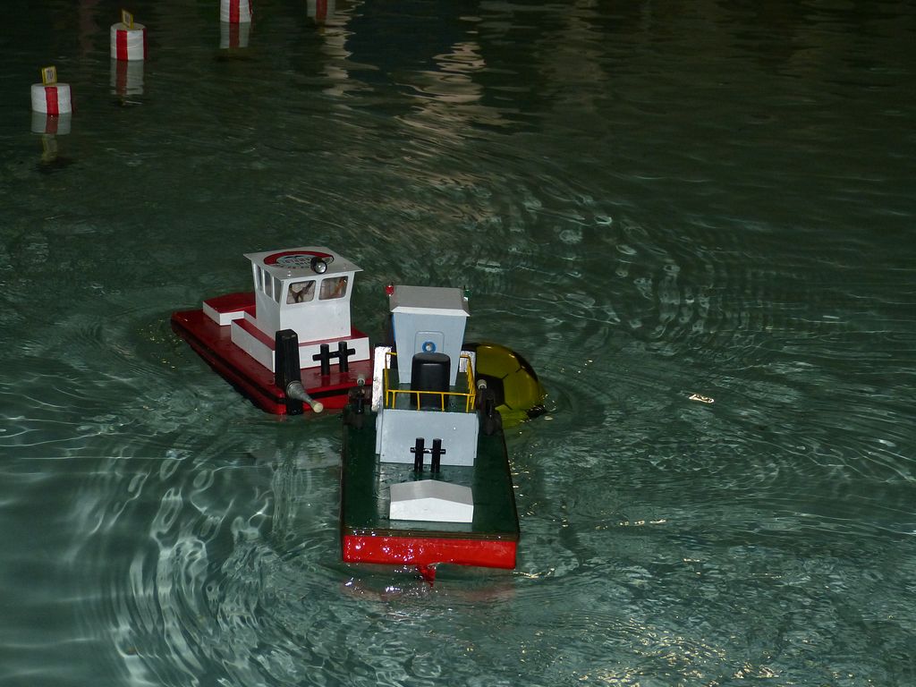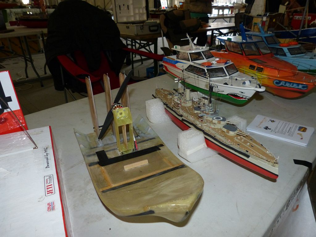 Celovíkendovou pomocí nám byla účast RC Klubu SIG-N.A.L. Třebíč, jehož členové své modely předváděli bez velkých prostojů podobně jako němečtí kolegové. Za KLoM Písek přímo z Marsu dorazil Petr Hájek, který měl být u bazénu po celou dobu veletrhu jako můj pobočník číslo jedna a který musel dát na poslední chvíli přednost pracovním záležitostem. Aby vše napravil, naložil do svého vozu vše, co pobral: Dozer, Novgorod, Springer... a také malou historickou plachetnici Pourqua Pas, jež se k našemu naprostému úžasu stala držitelkou ocenění