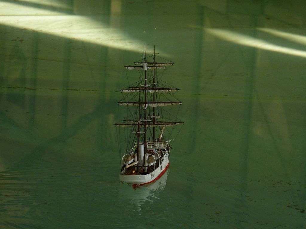 Mezitím jsme se v rámci možností pokoušeli předvádět lodní modely všeho druhu vždy tak, aby svou příležitost dostali hlavně jednodenní účinkující. Ve čtvrtek se mohl blýsknout Jirka Chaloupka a plachetničkáři z Kolína, v pátek můj klubový kolega Bohouš, aby v sobotu zazářili Alexander Čimo se svými parníky a plachetnicí RG-65 až ze Slovenska, Ivvo či KLoM Admiral Jablonec nad Nisou, jež vyslal po dvou juniorech a dvou seniorech.