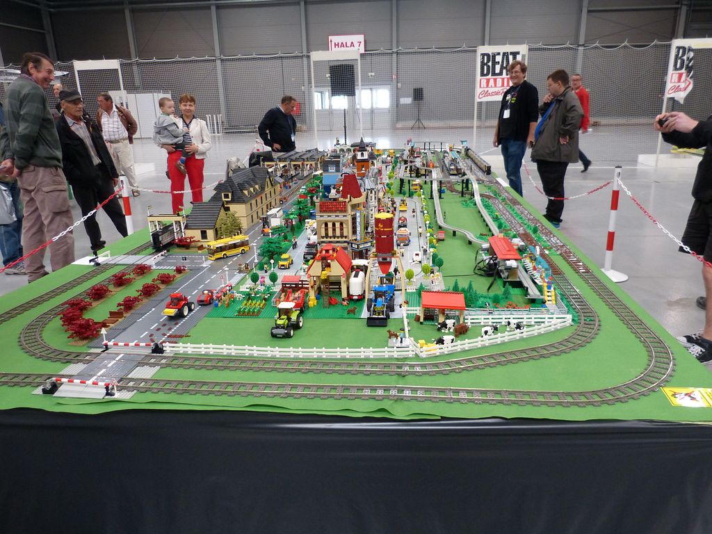 Bazén opanovali opět němečtí lodní modeláři, a tak jsem věnoval pozornost okolo stojící expozici kolejiště z Lega. Vláčky z kostek mě provázely v dětství. Dalo by se říci, že až do věku, kdy už si dospívající hoši s touto stavebnicí nehrají. O to více mi bylo sympatické vidět zde pána v pokročilejším věku. Lego na půdě časem vyhrabu a budu se tvářit jako železniční modelář.