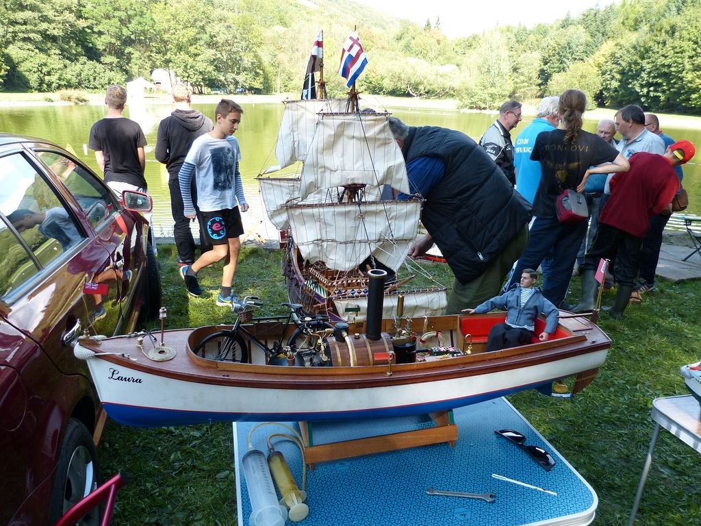 V neděli si cestu k vodě našli jak diváci, tak modeláři z okolí. Byly tak k vidění parníček Laura Ivana Kräutera či 23kg Golden Hind sira Francise Drakea z loděnic Petra Šebesty.