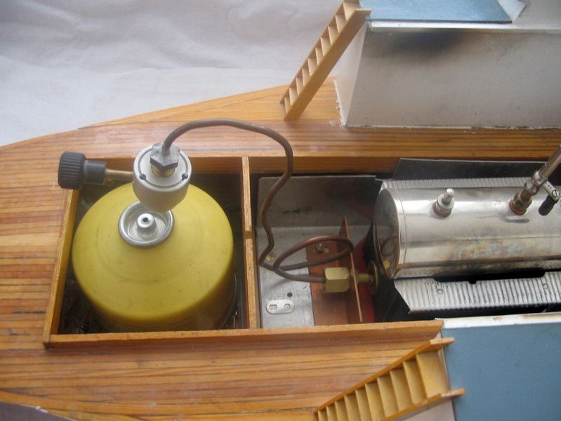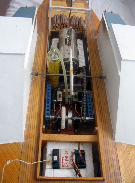 Souběžně se stavbou trupu jsem si připravoval parní stroj. V otevřené „strojovně“ lodi měl