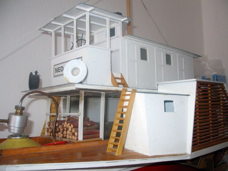 budku a horní nástavbu jsem zhotovil z překližky 0,8mm. Komín je z hliníkové tuby od šumivého