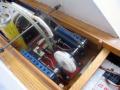 umístěn přijimač RC soupravy spolu s bateriemi. Servo pro kormidlo bylo spolu s vypínačem nakonec umístěno