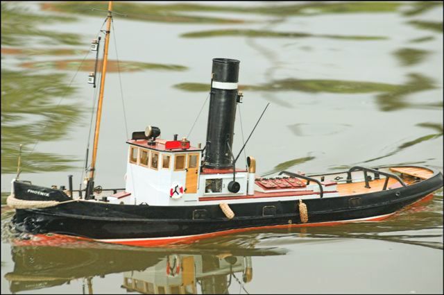 Po návratu z vojny jsem se vrátil do firmy, kde bylo možno něco vysoustružit a pracovalo se tam s různými kovy. V Modeláři asi z r.1970 jsem nalezl malý plánek remorkéru, beze jména. Patřičně jsem ho zvětšil - síťovou metodou (pánové, to nebyly ještě žádné kopírky a o možnosti zvětšování ani nemluvě). Při délce asi 1050mm a výtlaku asi 10kg mi loď připadala obrovská (ve srovnání se Schew.). Teprve nedávno jsem zjistil, že remorkér se ve skutečnosti jmenuje Cap Sizun. Ve Francii jsem se s ním setkal na MS v roce 2003(?). U nás s ním jezdí Vratislav Emler velmi úspěšně, jeho je trochu větší. Bohužel můj malý plánek byl natolik nejasný, že jsem řadu detailů musel domyslet.