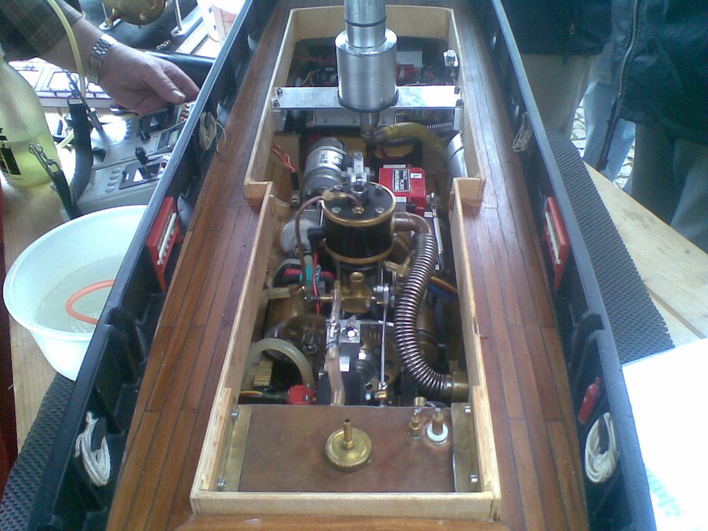 Po řece se proháněla pirátská loď. Sice to byl diesel, ale komu by to vadilo, když vozila děti, že? Vedle ní se ovšem proháněla parní lodička vozíc cestující, kteří si to opravdu užívali, hlavně tu vstupenku. Jako vloni, přijeli i letos mí známí z Německa a Rakouska a přivezli opravdu unikátní kousky. Třeba italský remorkér v měřítku 1:40 o délce 1140 mm poháněný benzinovým motorem vlastní konstrukce 40 ccm chlazeným vodou. Model obsahoval elektrický startér, tlačítkem na vysílači se startoval, pokud by se motor zastavil, měl elektromotor, na který by pohodlně dojel ke břehu. Lodní šroub měl natáčecí listy, takže nebylo třeba zpátečky. To vše modelář postavil za dva roky. Inu ti důchodci. Až vzadu pod mostem se ukázali modeláři s dvěma modely Titanicu a velice hezkou bitevní lodí Alabamou v měřítku 1:100. Na vodu se to báli chlapci dát, byl docela silný proud a tahat to někde ze splavu u elektrárny by se nikomu nechtělo.