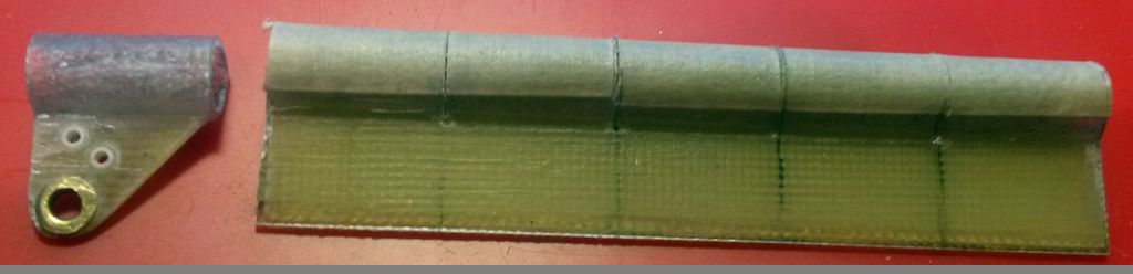 Následuje vyztužení předního lemu obou plachet, opět platí, že výztuha nesmí plachtu zbortit. Situaci komplikuje fakt, že musíme respektovat 3D tvar plachty a proto si musíme vyztužovaný lem plachty správně „nastavit”. Výztuhy jsem zkoušel provést pomocí pásky na pečící papír (neprotahuje se), případně ze samolepícího Skytexu. Abychom do výztuže nevnesli nežádoucí napětí, tak postupujeme podobně jako při lepení dílů plachty, kdy si fixujeme materiál výztuhy ideálně opatřený na lepivé straně krycí vrstvou, obdobně si připravíme plachtu a zafixujeme. Lepíme tak, že plachtu opatrně nadzvedneme, odstraníme krycí vrstvu a následně plachtu uvolníme a lepíme (po kontrole spoj domáčkneme například přejetím ložiskem). U kosatky je možné ze Skytexu vytvořit „tunel”, kterým potom vede přední stěh. Případně si nařežeme kousky trubičky, například vnitřek plastového bowdenu a nalepíme na vyztužený přední lem s roztečemi cca 100 mm.