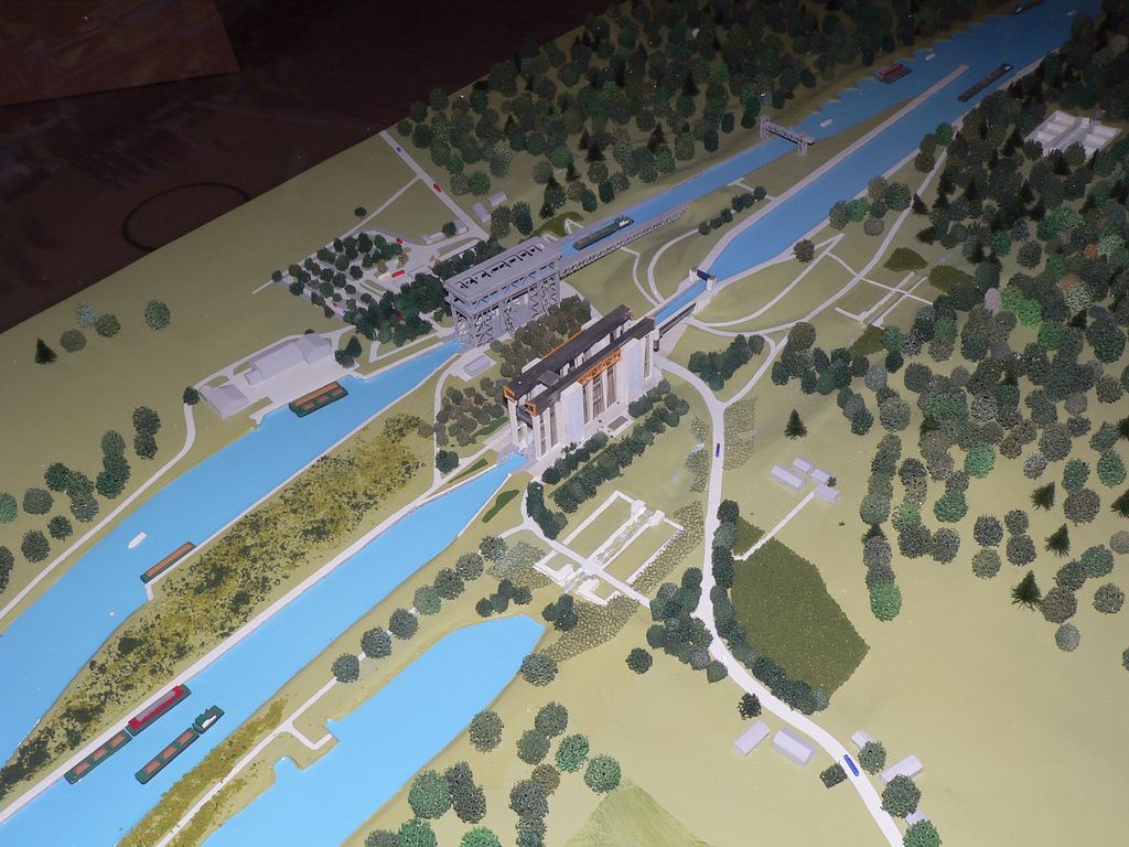Nejprve jsem zavítal do informačního centra. Tam jsem poprvé zjistil, že se němci rozhodli přistavět nové zdvihadlo, prý k vůli houstnoucímu provozu lodní dopravy. „No, já teda nevím, já viděl jenom hromadu parníčků, které jezdily s turisty sem a tam.“ Na leteckém snímku je vidět staré zdvihadlo a základy pro zdvihadlo nové. V informačním centru byly k vidění makety starého i nového zdvihadla, modely pracovních lodí. Také zde byly fotografie zachycující dopravu zboží na kanále ve všech ročních obdobích. V zimě zde používají ledoborce. Na jedné fotce je vidět, že před zdvihadlem zde byla vystavěna čtyři zdymadla.