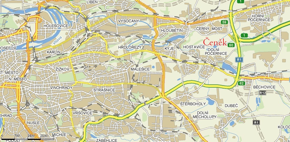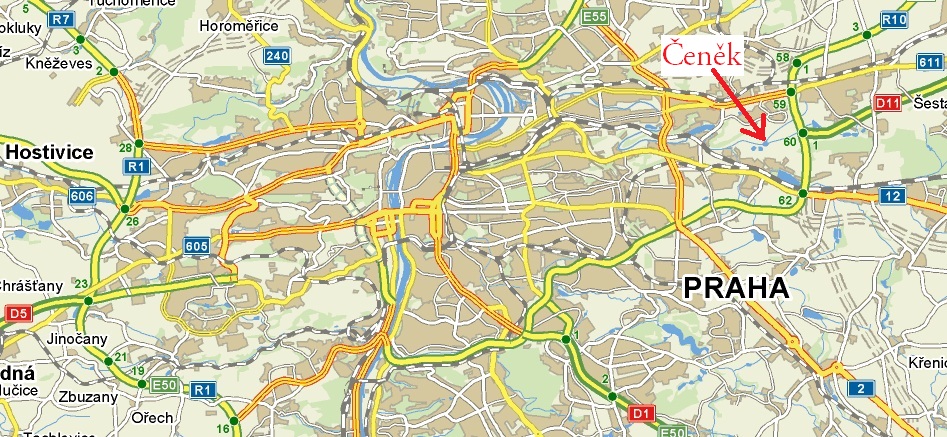 Z Pražského okruhu/Štěrboholské spojky sjedeme v místě sjezdu č. 62 na Český Brod (silnice I. třídy č. 12), ovšem vydáme se po Českobrodské směrem do centra Prahy! Po cca 1400 metrech na první světelné křižovatce odbočíme do ulice Národních hrdinů, podjedeme viadukt a jedeme asi 500 metrů s mírnou zatáčkou vpravo, dokud po pravé straně neuvidíme zámek. Hned za ním odbočíme vlevo do ulice K Zámku a po dalších 100 metrech odbočíme opět vlevo do ulice V Čeňku. Na konci zástavby musíme uhnout vlevo a po chvíli jízdy u zátarasů odbočíme ostře doprava a po zhruba 500 metrech jízdy mezi poli dorázíme k rybníku Čeněk (po pravé straně). V jeho okolí se nachází chatová kolonie.
