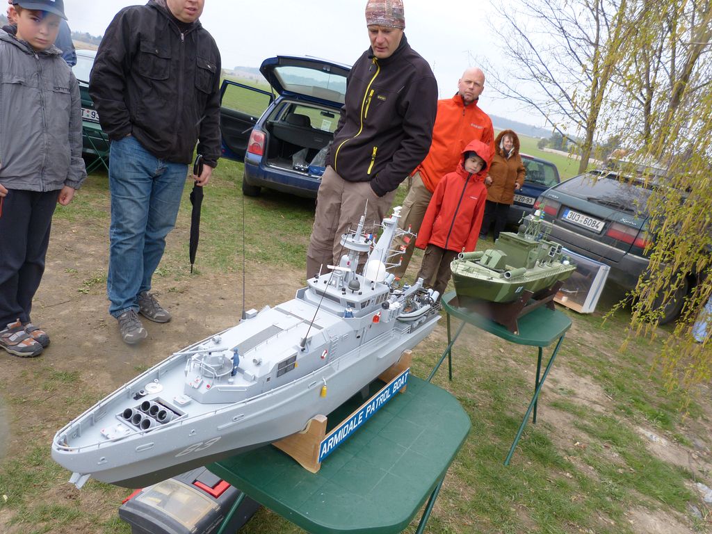 Počasí bylo všelijaké, rozhodně se nedá říci, že by bylo teplo. To však ve Velkém Přítočně třem desítkám modelářů pranic nevadilo. Jelikož jsme k vodě přijeli s předstihem, stihl Jiří Voráček roztopit svůj nový parníček (viz RC revue 4/2012) před oficiálním odemykáním. Jakmile došlo k otevření mola, začala se vodní plocha hemžit různými lodními modely.