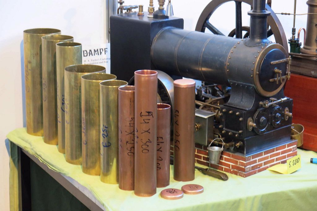 V hale dm-arena boli stánky predajcov a stoly s vystavenými modelmi lodí, strojčekov na paru, benzín a rôznych samohybov, ako trojkolky, bagre, buldozéry, autá s parným pohonom atď. Po minutí vydelených éčiek na rôzne potrebné veci sme sa vydali na prehliadku vystavených modelov. Musím sa pochváliť, že som odolal a Ms rúru D 100 mm a dľžky 200 mm za 40 € som nekúpil. Nový kotol vyriešim ináč.