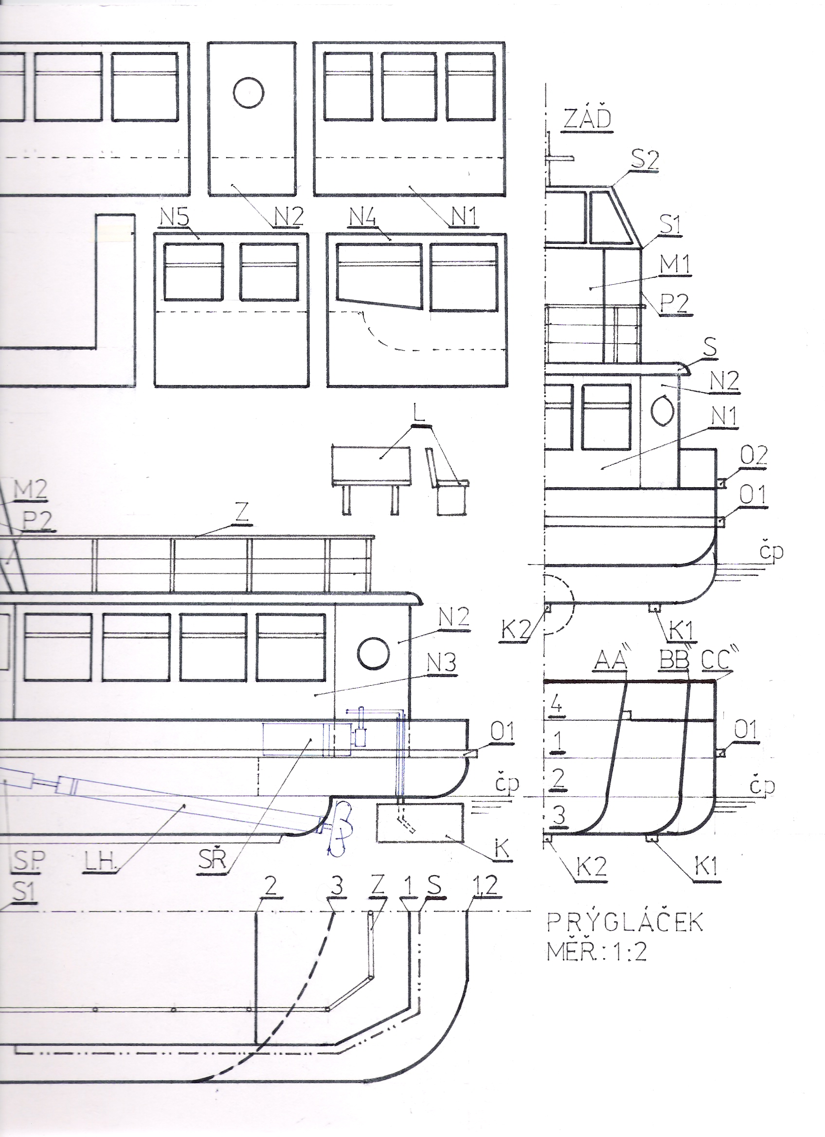 Doporučuji plánek vytisknout na A4 a slepit a mělo by to být v měřítku 1:2. Pak stačí každý díl dvakrát zvětšit. Nebo slepené díly na kopírce zvětšit na požadovanou velikost.