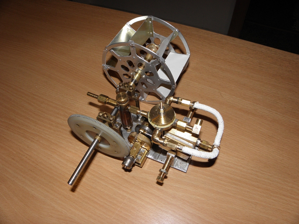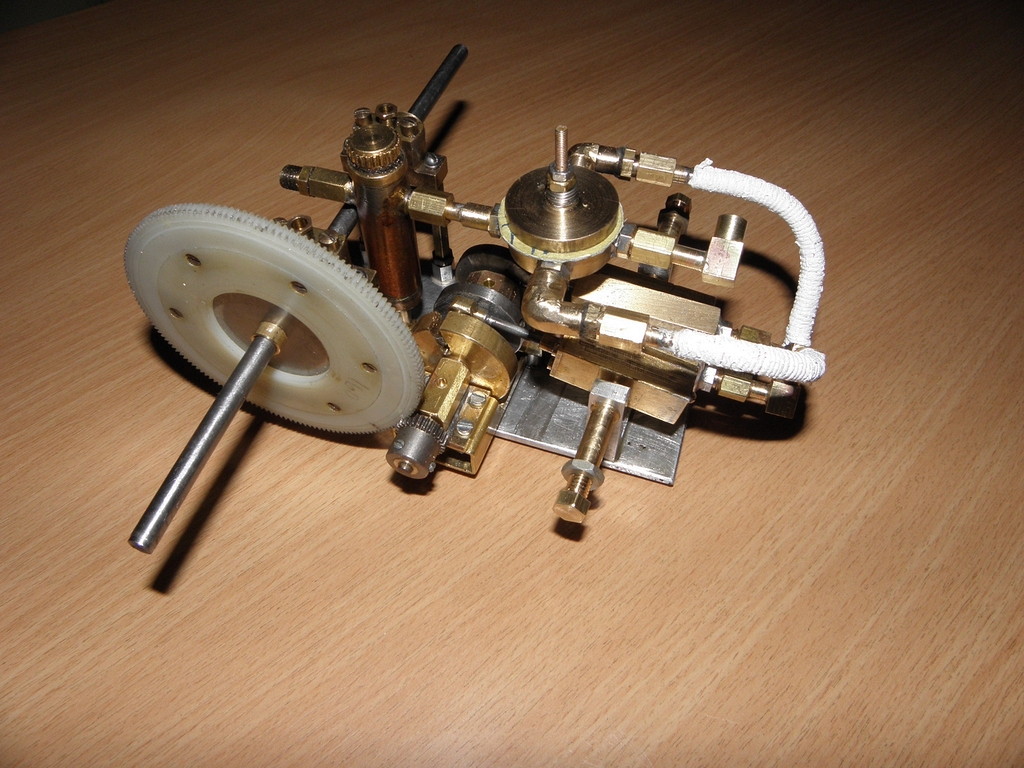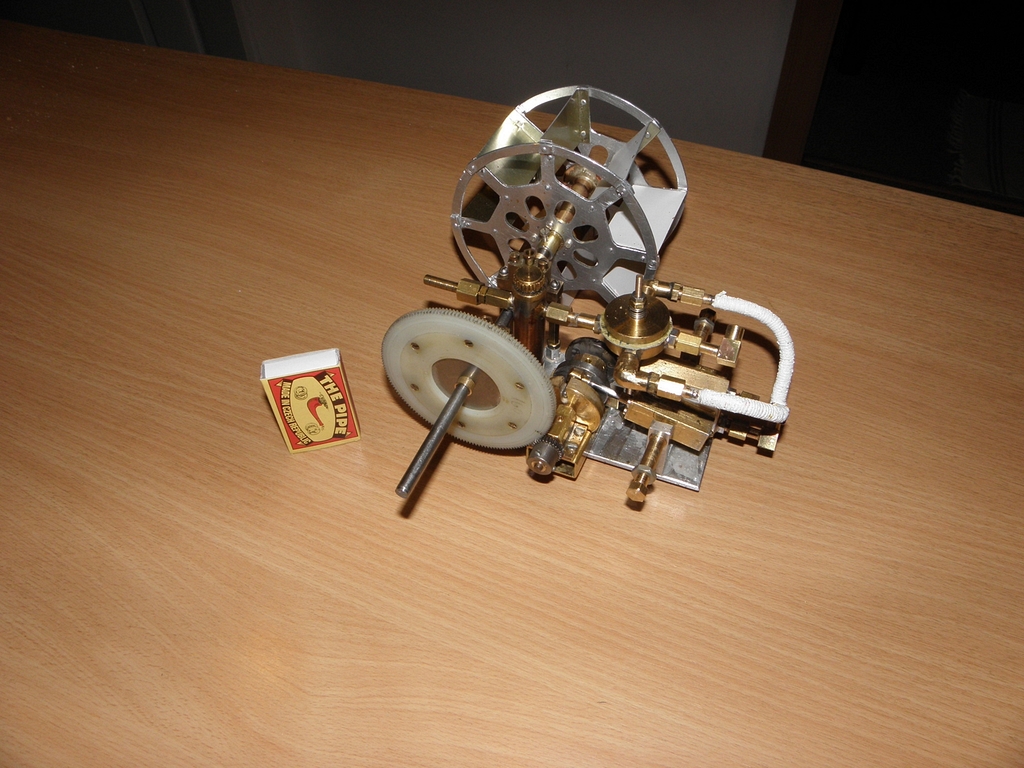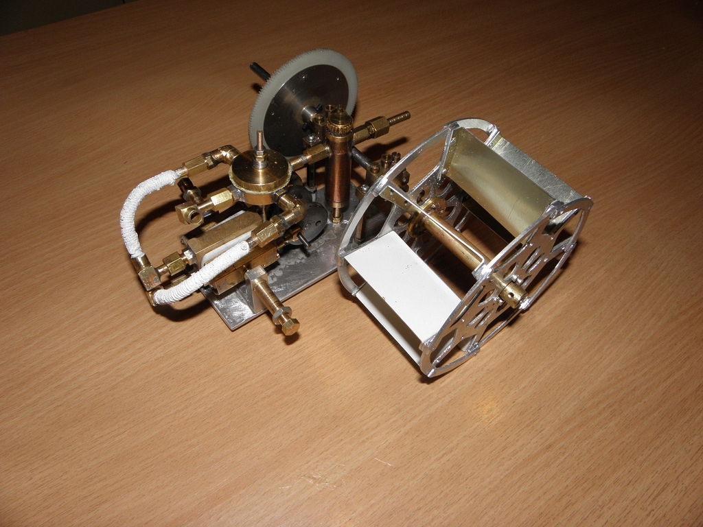 Doma jsem přišel na to, co se vlastně stalo - ochlazovací nádobka byla asi 3x4 cm a vysoká 5 cm (čili asi 60 cm3 což je „velký prcek“), ale kondenzovaná voda nikam neodcházela, nebylo už místo na další nádobku a jen výfuk z ní do komína nebyl k ničemu. Místo páry se i do výfukové trubičky dostala voda (nečekal jsem, že tam bude tolik vody), protože při zkouškách na podzim předchozího roku bylo relativně teplo a kondenzátu bylo málo... a malý výstupní tlak ze strojku nedokázal vyfouknout vodu trubičkou do komína a strojek se zastavil.