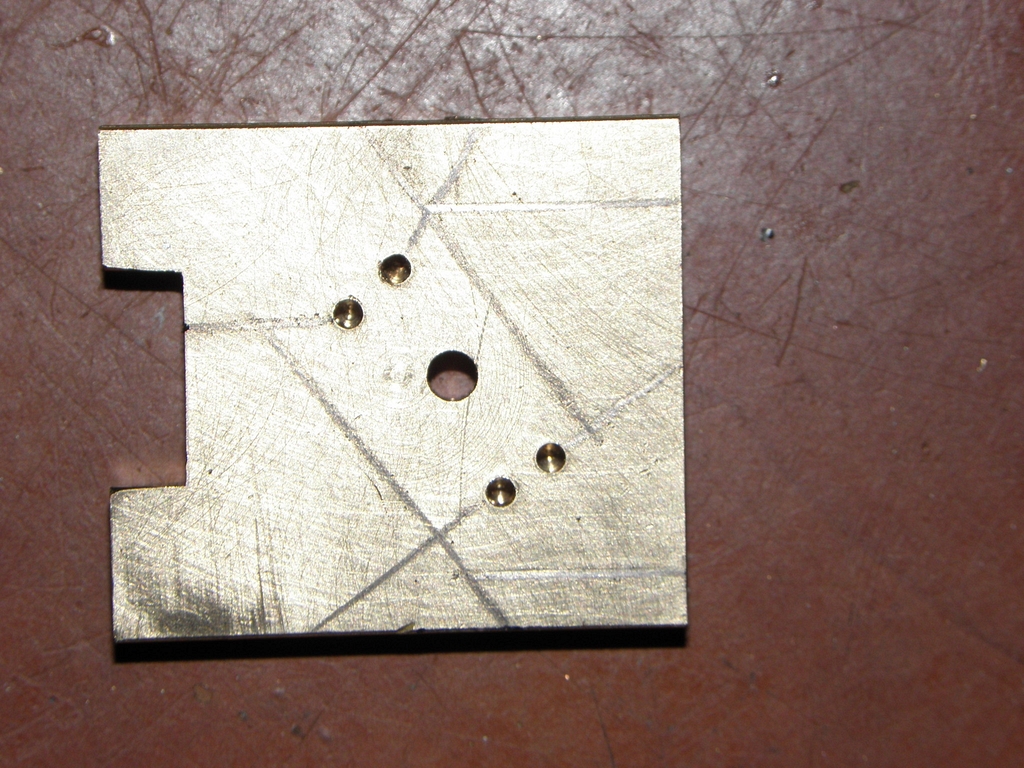 Neumím vyndat zalomený vrtáček z tvrdé mosazi a tak jsem vzal nový kousek měkké mosazi, označil si přepouštěcí otvůrky a vyvrtal je každý o chlup dále od osy než by měl být, takže celkem o asi 1 mm, což pomohlo. Mezi otvůrky je už ploška dlouhá skoro jako otvůrek, což znamená, že strojek může vykonat alespoň nějakou dráhu pod tlakem a tím tedy i práci... Uff.