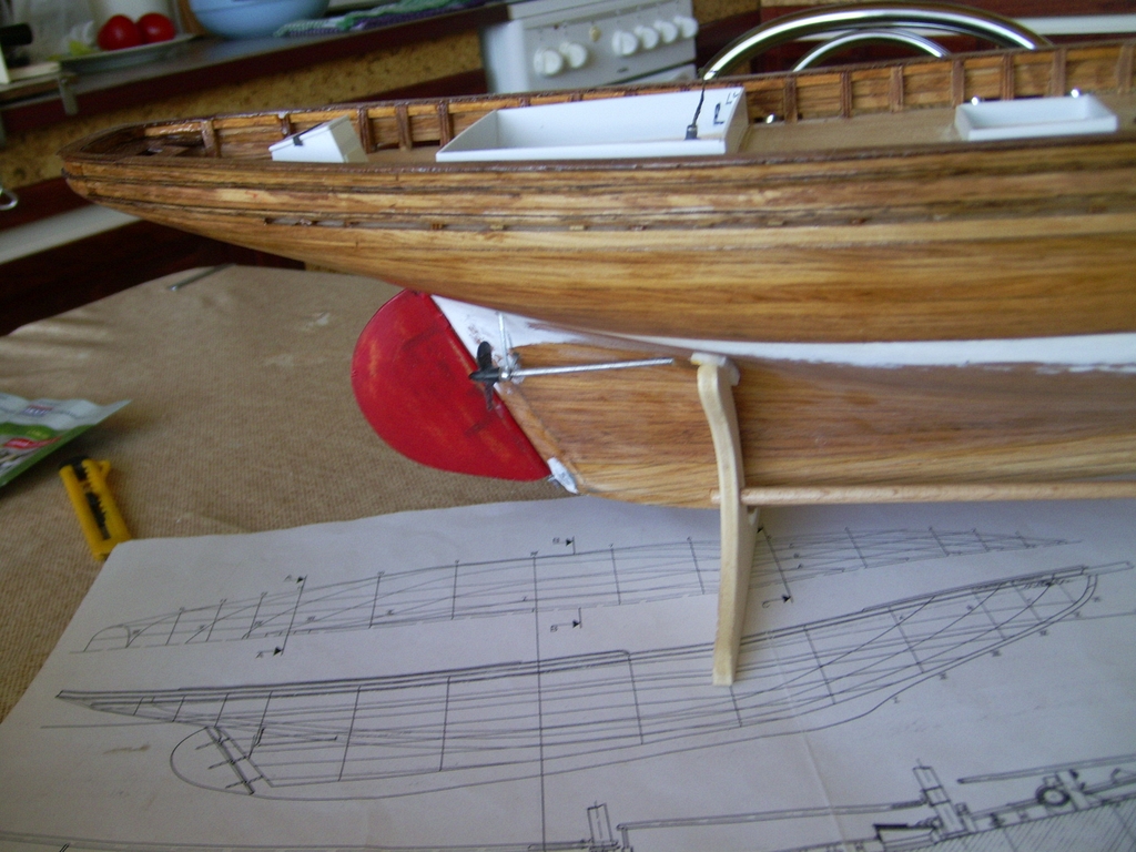 Zdroj energie 4 tuškové články. Trup a paluba sú plankované dyhou 1x2, 1x1, 1x3 a bambus 1x1 a 2x2. Paluba je z kusu dyhy.