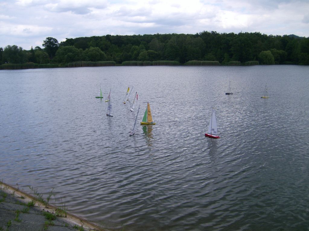 Posielam pár záberov zo seriálovej súťaže RG-65. Konečné nám počasie vyšlo. Svietilo slniečko, vetrík mierny ale tak trochu chaotický - preplesky zprava a zľava, ale inak super. Účasť výborná aj medzinárodná (z Moravy 1 účastník). Bohužial jeden náš kolega sa nechtiac vykúpal na tom šikmom betónovom brehu, obdoba brehu na Dářku, aj s výsielačom a už na konci súťaže. Škoda nemal som u seba foťák. Ja som skúšal mini Benjamina. Konečne. Predchádzajúce akcie v Senci boli krúté, pre veľké vlny a vietor.
