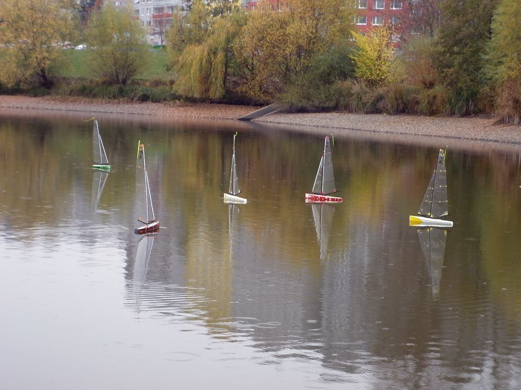 Předpověď počasí slibovala spíše zimu a déšť, rozhodně ne příhodný vítr pro poslední letošní soutěž plachetnic Footy. A do toho mi týden před akcí zvonil telefon od různých příznivců, kteří neúnavně hlásili, že v nádrži voda ubývá. Na poslední chvíli jsem proto vydal pokyn, že bude-li vody opravdu neúnosně málo, přesuneme se na Nepomucký rybník pod tubus metra, kde shodou náhod místní DDM v pátek 4. listopadu uspořádalo noční jízdy.