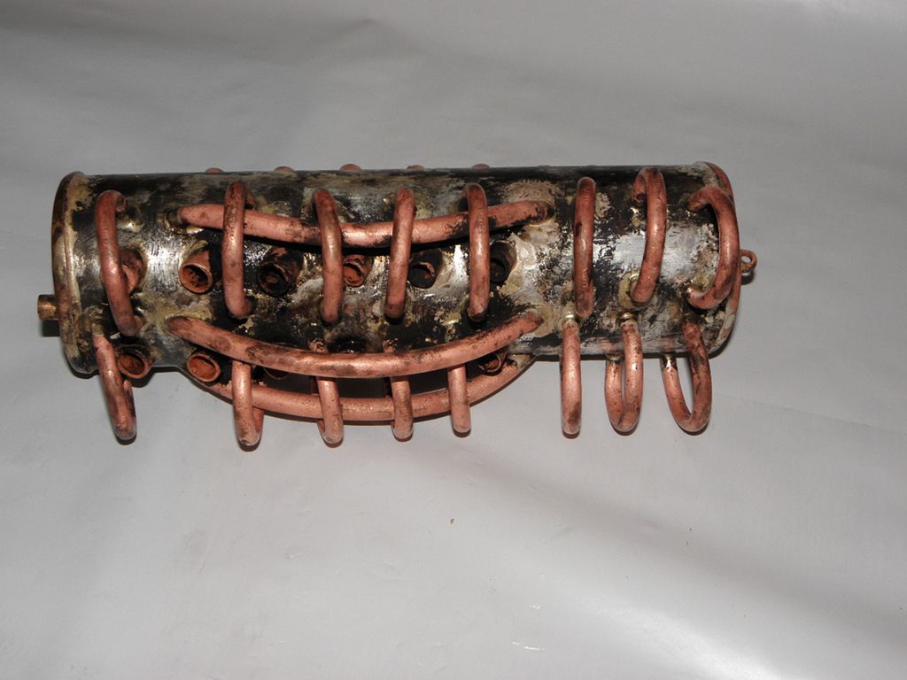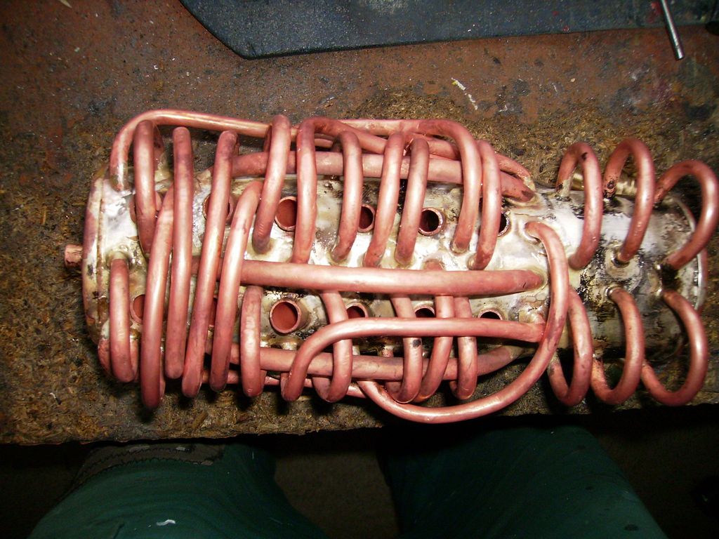 Takhle jsem kotlík vylepšil, protože dával málo páry, a tak jsem přidal dalších asi 10 trubiček tam, kde to šlo...