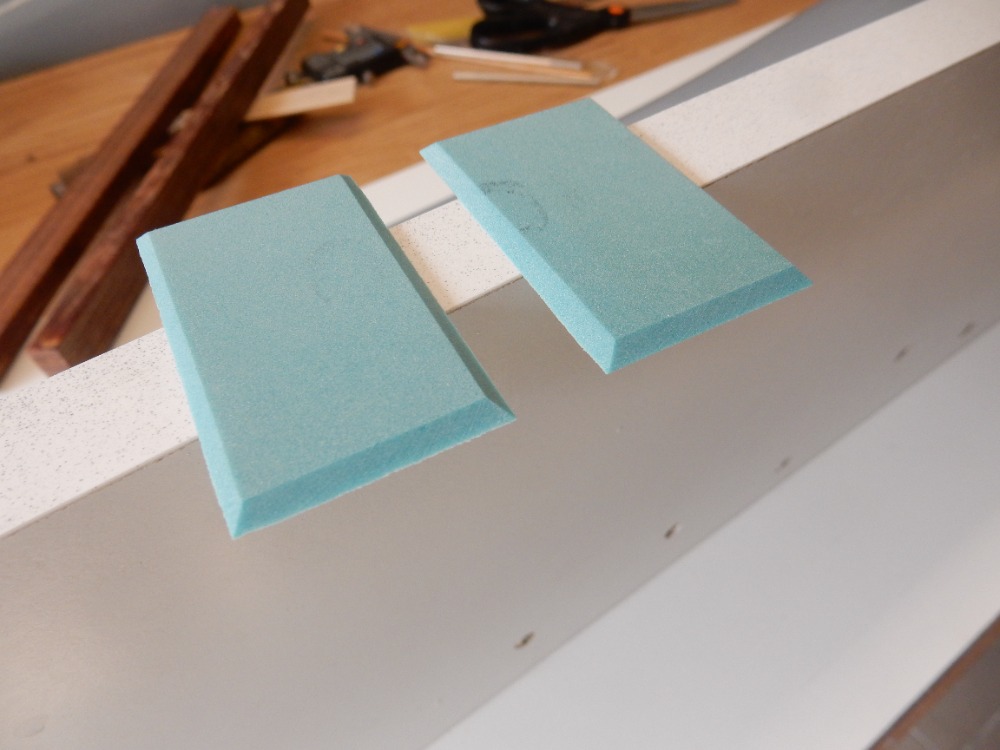 Na obrázcích 29, 30 a 31, je již patrné přilepení zkosených částí výběhů na trup lodi.