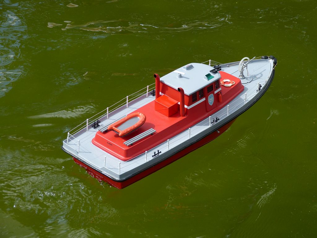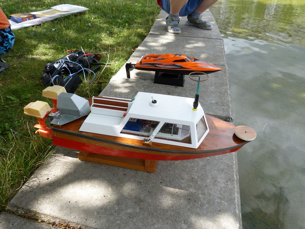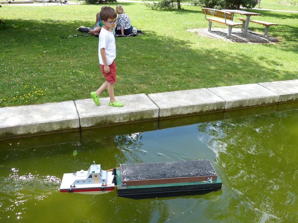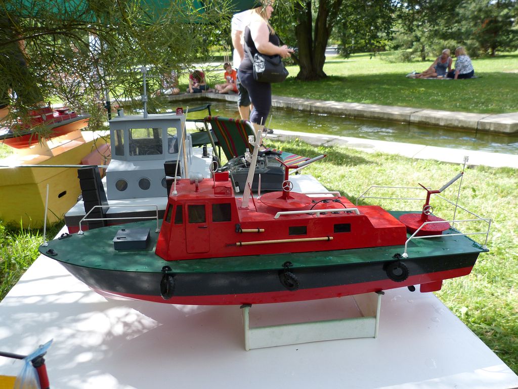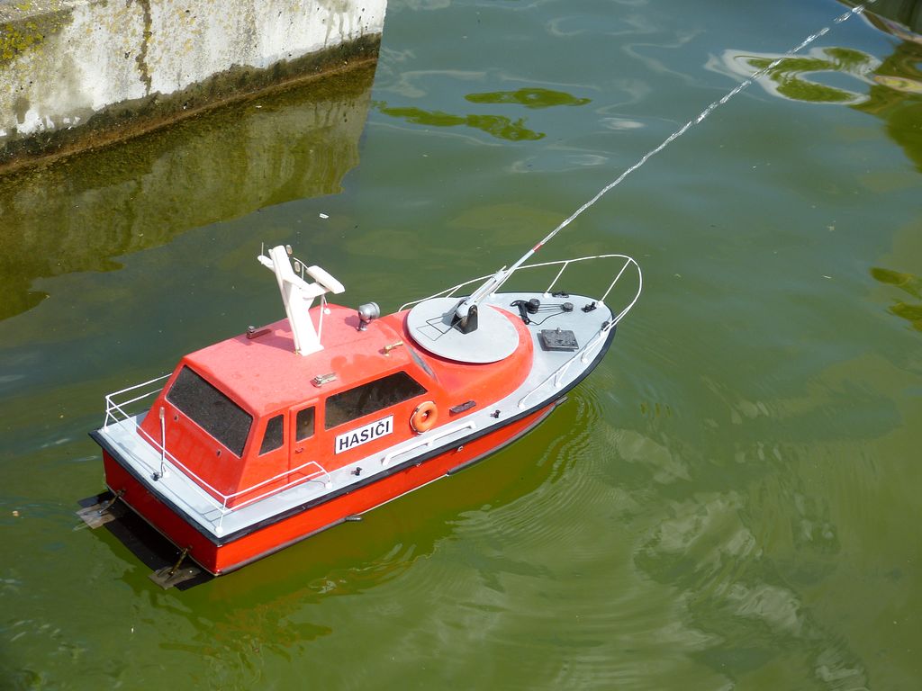 Jako první šli na vodu modely hasičských lodí. Díky účasti pouhých tří modelářů byla dvoukolová soutěž během chvilky za námi. Zde se musím omluvit, že jsem s dostatečným předstihem od břehu, kde soutěžící běhali, neodehnal diváky. Příště se polepším.
