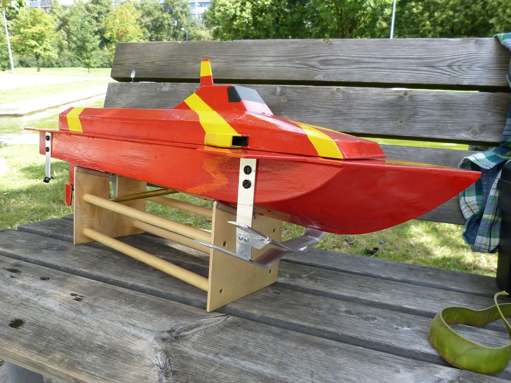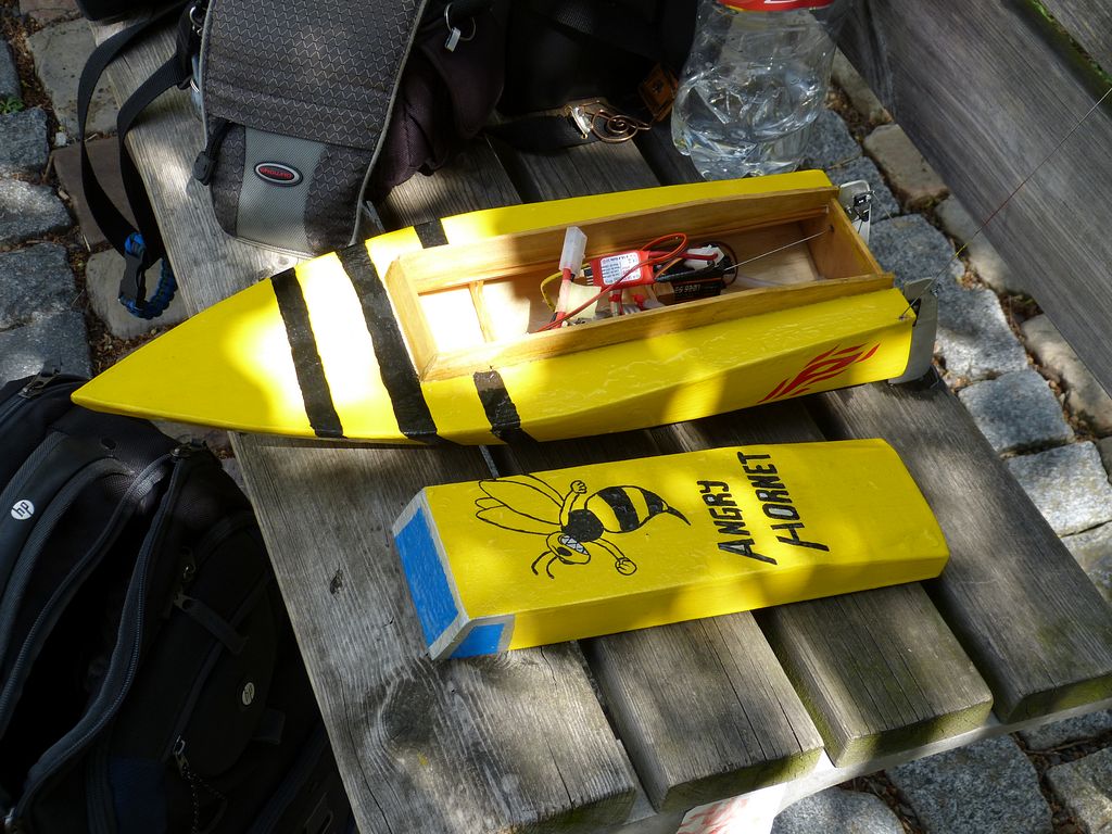 Springer Cup se těšil ještě menšímu zájmu. Modely jsme přivezli jen my dva s Bohoušem. Jelikož David Kellinger projevil zájem si to zkusit s námi, postavili jsme se na start tři. Uvázaná vana nepředstavovala větší problém, a tak jsem na vodu vyrazil na plný plyn a preventivně vymetl pravou bójku v dvojici branek, co byly dva metry od sebe. Pak jsem vanou škrtl ještě o bójku, která stála uprostřed zlomu kanálu. Otočku o 180° v úzkém kanálu jsem raději neriskoval a dojel se otočit na volnou vodu. David Kellinger byl odvážnější a ukázal nám, že to tam zlomit jde i bez dotyku, když do vany foukne vítr v pravou chvíli ze správné strany.