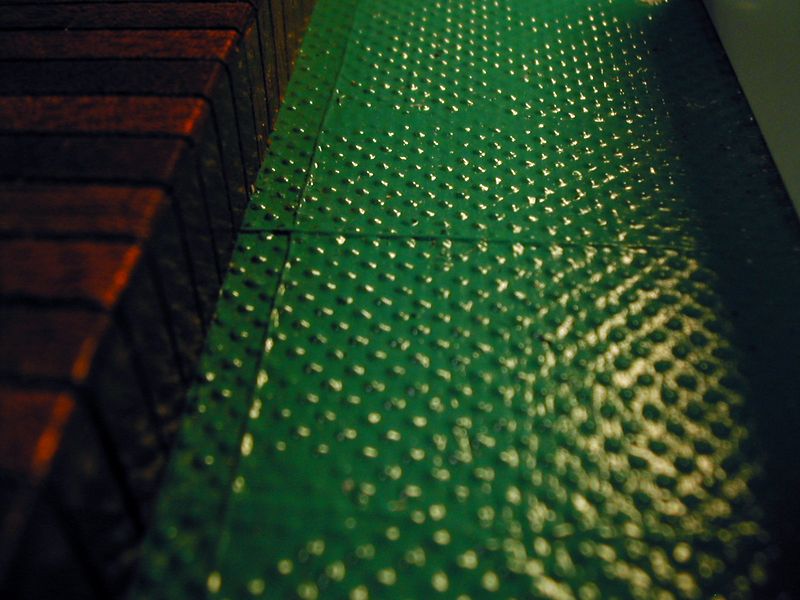 Při stavbě svého nového remorkéru jsem řesil, jak jednoduše vyrobit protiskluzovou palubu. Výroba laminatové paluby do negativní formy se mi nedařila, proto jsem zvolil alternativní způsob. Na laminátovou palubu jsem nalepil herkulesem předem prolakovaný toaletní papír s vhodným vzorkem.