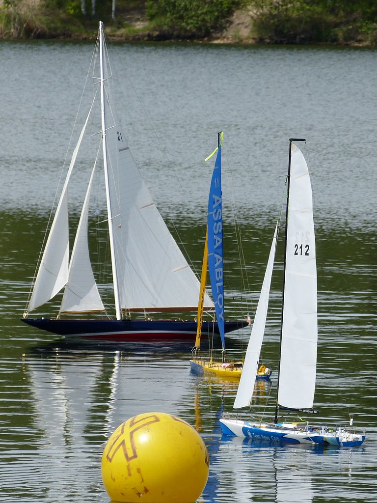 Ze všech ruských modelů mi v hlavě utkvěla modrožlutá Assa Abloy, se kterou v dáli za vrcholovou bójí zápolil jeden klučina. Zda ztratil dosah (2,4 GHz v uhlíkovém trupu?), či šlo jen o páčkový běs ve spojení se špatnou viditelností a malou zkušeností, sice nevím, zato vím, že pod dohledem dospělého by to jistě šlo lépe. Ale to se během soutěží nesmí, takže několikrát přišel ke slovu svážecí člun.