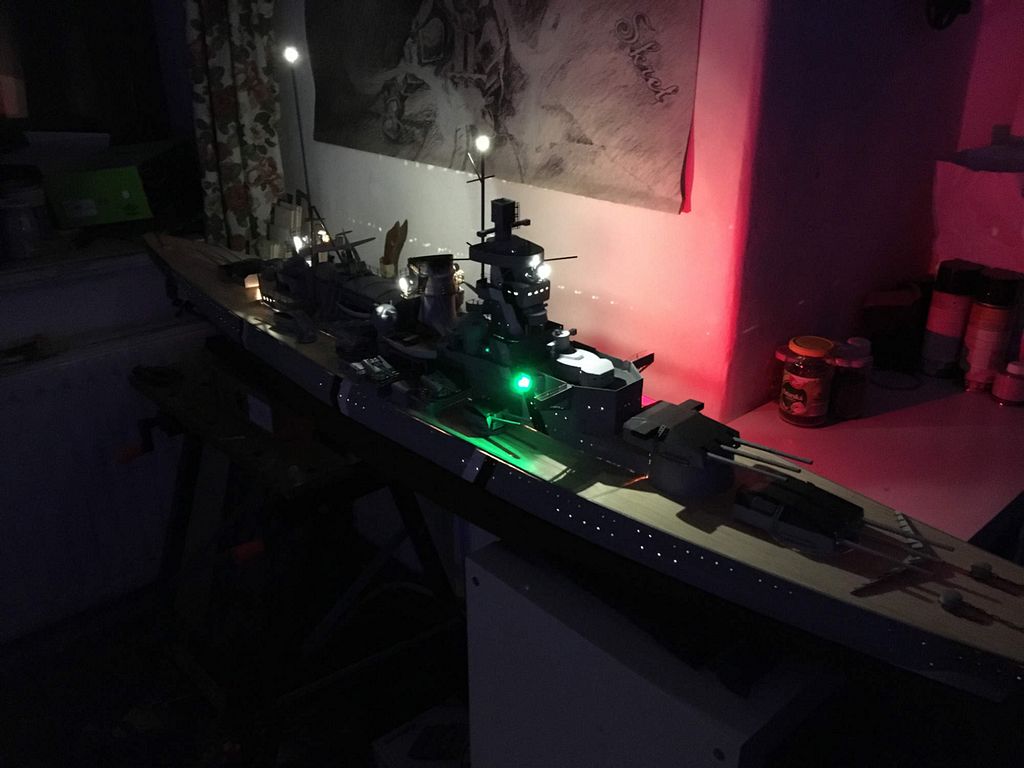 K dalším funkčním prvkům patří osvětlení, to je rozděleno na dva samostatné okruhy. První obsahuje poziční světla plus pátrací/signální reflektory. Druhý spíná LED–pásek který je nalepen po celé délce uvnitř trupu. Jednak osvěcuje veškerá okýnka (bohužel také spáry v palubě a nástavbách) a zároveň slouží jako lampička pro „servis” uvnitř lodi.