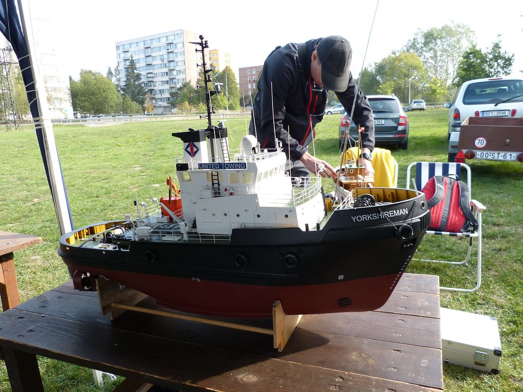 V sobotu 3. října 2015 proběhl v Písku další sraz lodních modelářů, v pořadí již sedmnáctý. Původně byl plánován na srpen, ale kvůli mé plavbě na plachetnici La Grace, o které se rozepíšu někdy později, došlo k přesunu na tento pozdější termín. Vše zlé je pro něco dobré – podařilo se nám trefit do chvíle, kdy byla louka u vody po zářijových deštích čerstvě posekaná, a tak nám odpadla neatraktivní klubová brigáda. Ačkoli jsme se v den konání báli hlavně počasí, to se nakonec ukázalo jako celkem přívětivé. Na programu byla soutěž maket, klání Springerů a poslední soutěž Poháru modelů hasičských lodí 2015.