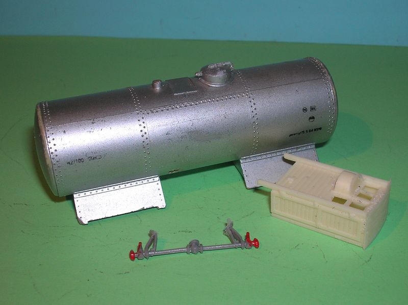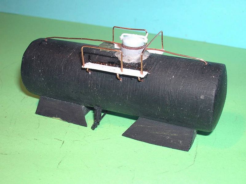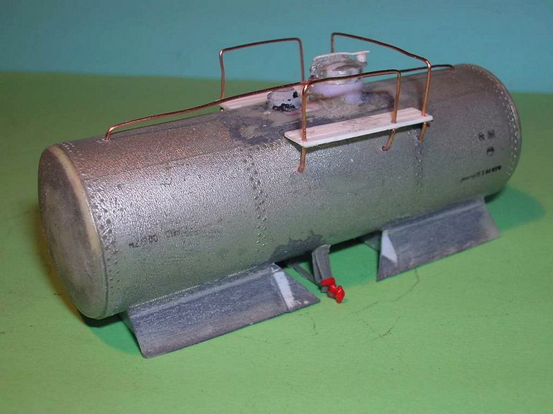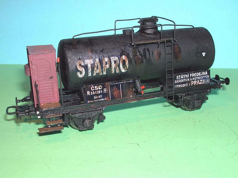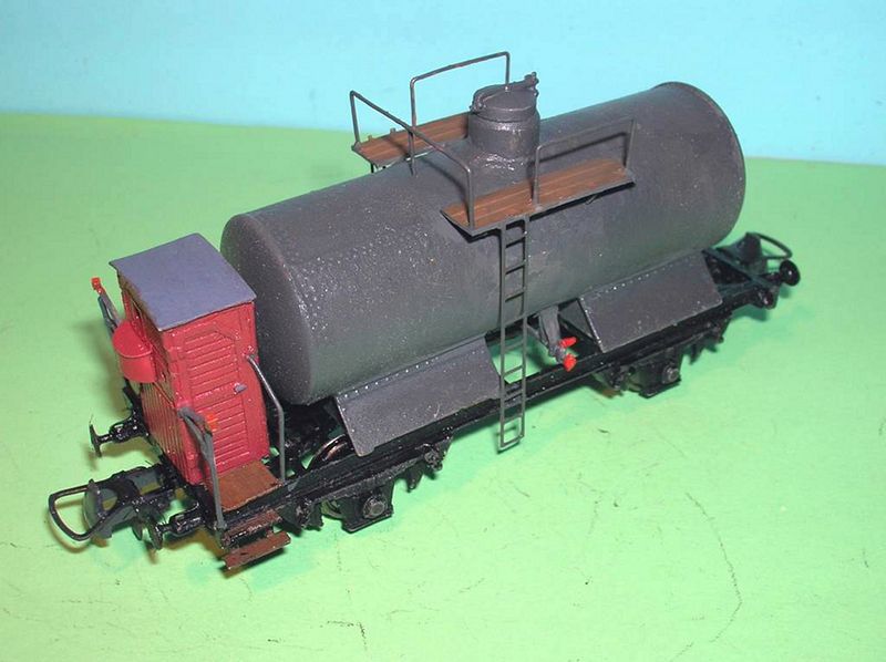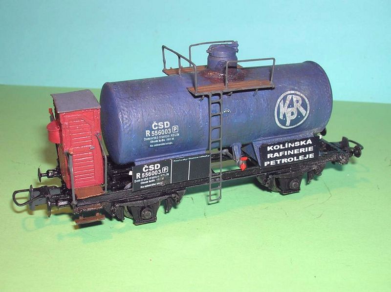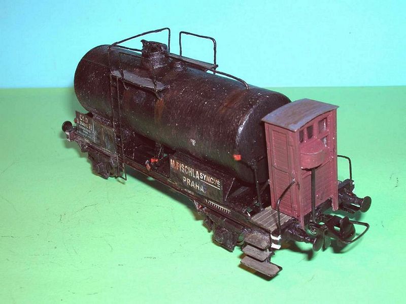 Kotel pochází z dřívější zásoby od firmy Piko. Podélné lávky se zábradlím na jímce, montáž plnícího otvoru a žebříku pro přístup k podélným lávkám.
