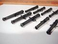 Oplachování v neutralizační lázni musí být pečlivé, protože pokud zůtane v hlavni troška nějakého roztoku, dopadne to jako na obrázku - viz třetí dělo zleva. Ideální je natáhnout trošku vody se sodou do injekční stříkačky a otvor hlavně prostříknout.