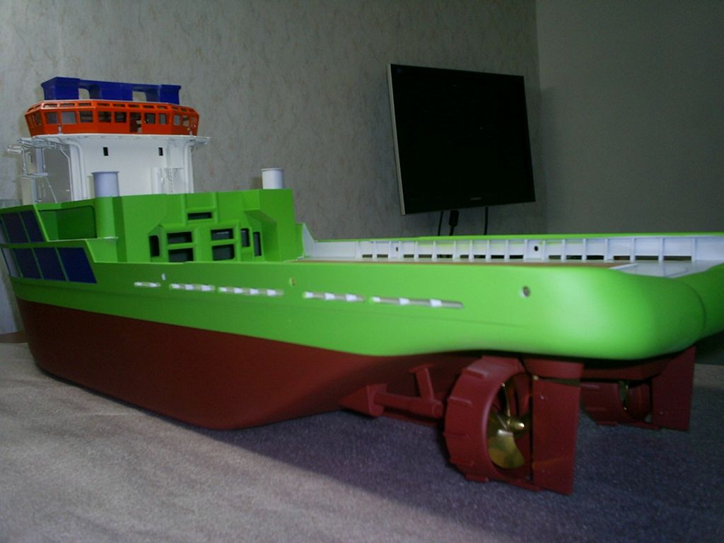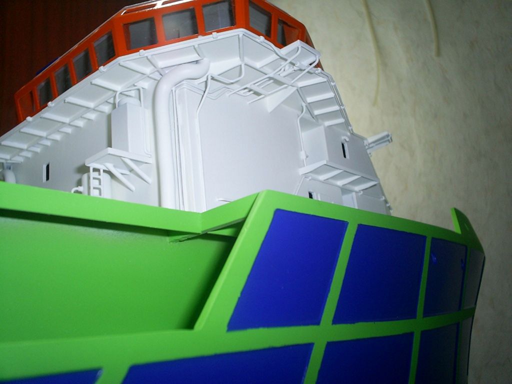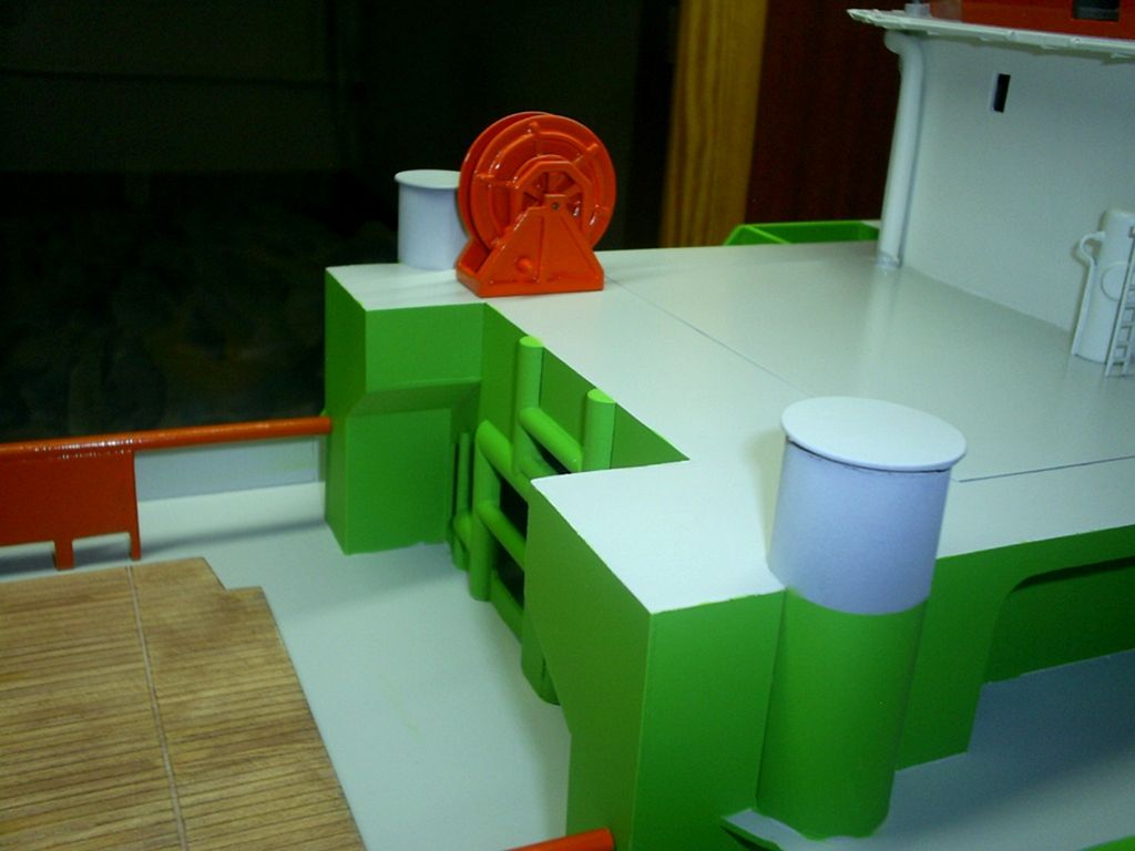 Doba letních dovolených trochu práci na lodi zpomalila, nicméně se pomaličku rýsuje podoba. Nástřik originálních odstínů barev podle předlohy a pohrávání si s detaily nástaveb a vybavení, to je nynější fáze modelu.