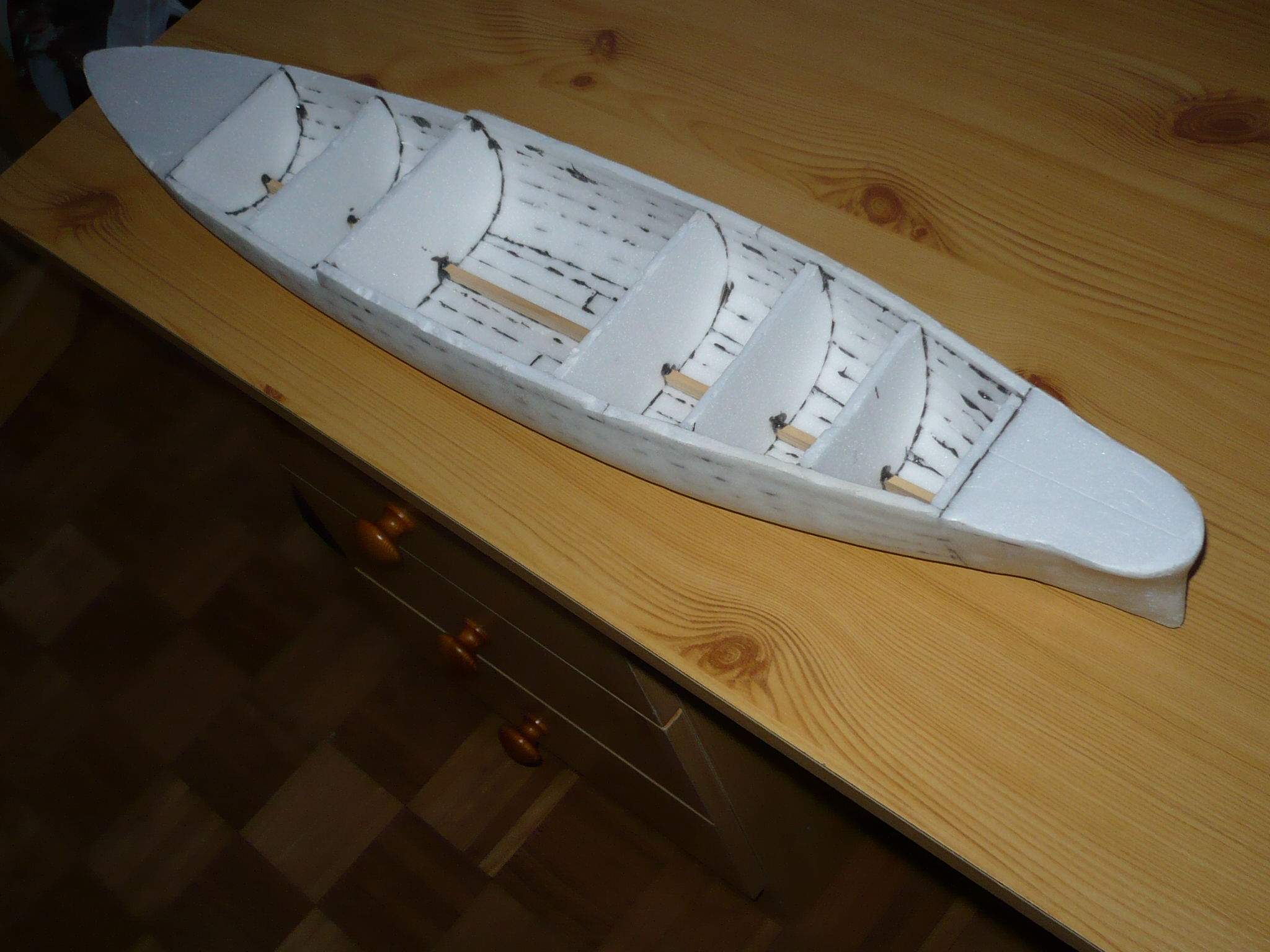 Konstrukční trup složený z kostry a obšívky se v lodním modelářství tradičně zhotovuje z dřevěných materiálů. Oblé trupy se plaňkují (podrobněji popsáno dříve), trupy hranatějších tvarů (šarpie apod.) se potahují pláty překližky či balzy. V zásadě však nic nebrání vyzkoušet i materiály jiné a ani klasika nejklasičtější není věčné dogma. Jsou známy experimenty, kdy byl na zhotovení plaňkovaného trupu použit místo dřeva deskový extrudovaný polystyren (xpron). Postup je stejný jako při klasické stavbě pomocí dřevěných materiálů. Práce však postupuje snáze díky větší měkkosti a poddajnosti EPS. K lepení lze využít epoxidy, lepidla na polystyren, nebo polyuretanová lepidla. Poslední jmenovaná jsou výhodná kvůli tomu že při tuhnutí vypění a zaplní spáry mezi plaňkami, které by bylo jinak třeba tmelit. Příď a záď se analogicky ke klasickému postupu vyplní a vybrousí ze silnějších kusů EPS. Výsledkem je lehká a přitom relativně pevná konstrukce, kterou je třeba následně ještě olaminovat. Nejlépe z obou stran, vznikne tak velice pevný laminátový sendvič s polystyrenovou vnitřní výplní.