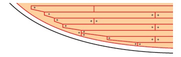 Také je nutné se rozhodnout, jestli palubu uděláte vcelku, nebo z více dílů. U modelu délky do 600 mm je reálné udělat palubu v jednom kuse, u většího modelu je lépe již zvolit její zhotovení z více dílů. Měl jsem to štěstí, že pár lodí jsem prolezl, a v mém oblíbeném měřítku 1:40 pláty vycházejí přibližně 50x50 mm. Zprvu jsem dělal jednotlivé pláty a ty pak lepil na podklad. Nyní dávám přednost větším celkům, pásy tvoří tři až pět plátů. Dále je potřeba vědět, jaký má ten plech povrch. Na lodích jsem se setkal od hladkého povrchu přes „kroplovaný“ (viz obrázek) až po různě vzorkovaný. (Protože stavím nejvíce podle polských plánů, používám i jejich terminologii.)