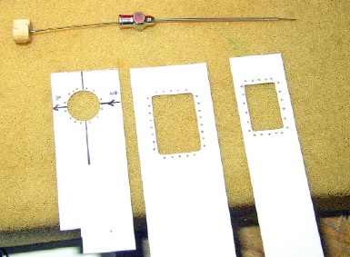 Z kusu železa mám zhotovený přípravek (viz obrázek). Otvory v něm mají průměr od 0,6 mm až do 1,5 mm. Napříč jdoucí zářez má tloušťku materiálu, ze kterého se vyrábějí podložky do kancelářských složek. Přípravek ve svěrce dám do stojanu vrtačky a do sklíčidla vrtačky vložím zabroušenou stopku zlomeného vrtáku odpovídajícího průměru. Pak již razím jednu hlavu nýtu či šroubu za druhou (je potřeba jich udělat minimálně 50 % navíc). Tyto „hlavičky“ pak lepím na již kompletně hotový povrch modelu. Na nesavou podložku kápnu trochu disperzního lepidla Herkules. Ocelovou pinzetou vezmu jednu hlavičku a na její spodní rovnou stranu špičkou jehly nanesu trochu lepidla. Potom už se jen musím trefit na místo určení. Čtyři, šest, osm hlaviček lepím od oka. Pokud je jich víc, naznačím si měkkou tužkou jejich pozici. Když Herkules zaschne, trochou barvy odpovídajícího odstínu přilepené hlavičky ještě přetřu. Pozor - jen lehce! Hlavička musí získat potřebné zbarvení, ale barva ji nesmí zalít, její hrany musejí zůstat ostré. Práce je to piplavá a kupodivu nejhůře jdou ty poslední hlavičky.