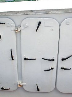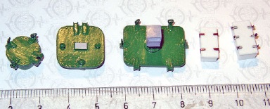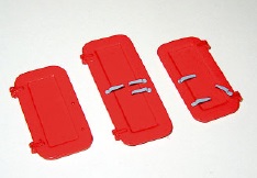 Obdobně zhotovuji poklopy. Drobné vylepšení mám pro ty poklopy, které mají v sobě jedno nebo více okének. Tělo poklopu zhotovím přímo z čirého plastu a na něj nalepím rámy oken. Rám a to, co má zůstat čiré, jednoduše zamaskuji hnědou lepicí páskou, přestříknu barvou, přilepím závěsy, křídlové matice a ochranné pruty nad sklo. Poklopy také zřídka leží přímo na nástavbě, proto ještě ze spodní strany přilepím tenký rámeček kolem obvodu celého poklopu a je hotovo.