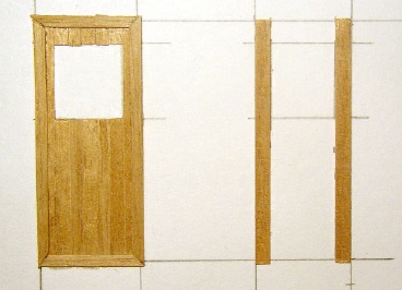 Pokud musím udělat dveře dřevěné, postupuji následovně: Nejdříve si obrys dveří včetně rámu nakreslím na papír a pak přímo na něj lepím jednotlivá prkna. Když jsou celé dveře hotové, odstraním přečnívající papír, a pokud je to nutné, obrousím zadní stranu. Drobné upozornění: dřevěné dveře bývají zasazené stejně, jako máte doma. Ty pancéřové, ale nikdy nelepte těsně na stěnu, vždy by měly být mírně nad ní. U skutečných dveří je totiž v rámu těsnění a do rámu zapadá protikus na vnitřní straně dveří. Samozřejmě je nutné se držet výkresů, případně fotodokumentace. Na dveřích jsou také zámky. Na dřevěných normální FAB a na ocelových a bednách pěkný visací zámek. Docela to ty dveře oživí.