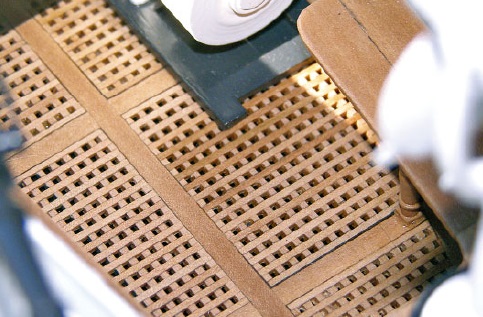 Ventilátory také bývají v různé velikosti. U těch drobných vystačím s tyčinkou od lízátka a spoje napodobím mezikružím z tabulky s hlavami šroubů podle minulého dílu. Hranatou hlavu, kudy je nasáván nebo vytlačován vzduch, dělám z odřezků organického skla, které slepím a pak zase opracuji na potřebnou velikost. Otvor v hlavě je překryt plechem ve tvaru širokého U. Stačí k tomu přípravek slepený ze dvou kousků tabulky a nejtenčí tiskařská hliníková fólie. Velké kulaté ventilátory dělám takřka celé z papíru, jak nohu, tak její horní trychtýřovité rozšíření a kryt vstupu vzduchu. Pouze zesilovací lem je z měděného drátu. Důležité je hlavně důkladné prolakování či jiná impregnace tohoto papírového dílů. Klasické „fajfky“ laminuji na kopytě z polystyrenu; spodní kulatá noha je opět z papírové trubky.