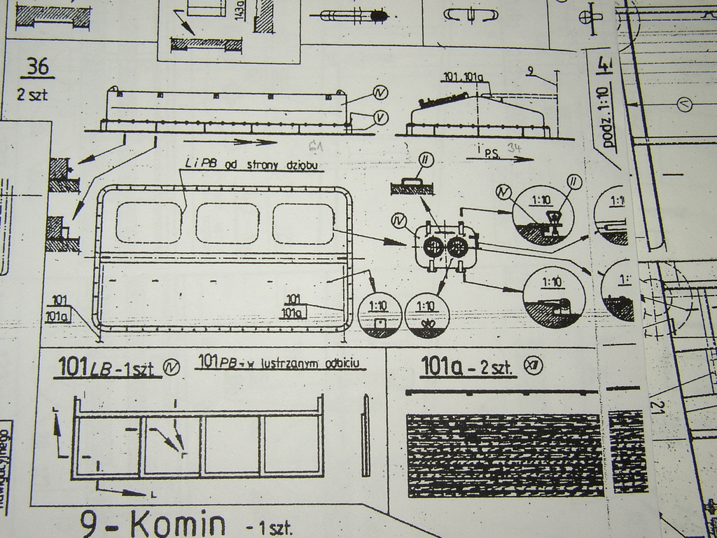 Sezona tehdy končila, jak jinak než v Bakově, a tam mi Ota Holan věnoval dvě fotky ze Štětína, zase Stražaka 25. Doma jsem si to v klidu začal dávat dohromady a vyšlo mi z toho, že opravdu existují tři sesterské jednotky, ale bohužel každá trochu jiná a já jako naschvál mám vyfoceno něco jiného, než je na plánu. Přemýšlel jsem o stavbě podle fotek, ale naštěstí jsem si to rozmyslel a dodělal jen trup podle plánu a věnoval se jiné maketě.