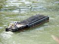 Boky lodi a její dno jsou „ozdobeny“ otěrovými lištami nařezanými z 1mm smrkové dýhy. Nátěr pod čarou ponoru jsem provedl štětcem a stříkána je pouze horní černá část. Vzhledem k následnému patinování rezavě hnědými fleky a pracovnímu zařazení není nedokonalý povrch na škodu.