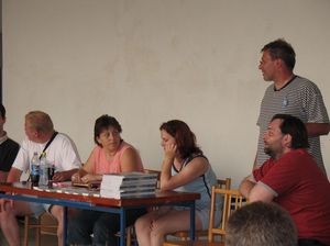 Večer Keba provedl krátkou instruktáž závodníků, seznámil nás s plánem. Poté následovalo školení rozhodčích kde jsme si jezdili po stole lodičkami z kinder vajíček abychom v tom měli jasno. Vše jsme si vysvětlili a rozešli se do víru dění. Každý měl ještě hodně práce na lodích. Ve dvě v noci, když jsme se rozcházeli, jsme se ještě rozhodli navštívit Přemu. Bylo tam rušno jak v loděnici a všichni v plné práci. Byla potřeba prodlužovačka na servo, jednu jsem měl, ale na Hitec a Přema používá Futabu. Vítek se rozhodl, že seřízne konektor. Přema ve stavu největší beznaděje prohlásil – „Ten červený kabel uřízni, já tam BEC nechci“. Rozhostilo se ticho a Vítek profesorsky odvětil - „Přemo, to je servo“ a všichni vybuchli. Přispěli jsme mnoha „podnětnými“ příspěvky a nechali je, abychom nenarušili jejich Stachanovské tempo. V tu dobu se to, že Přemovo WG vyjede, zdálo čirým utopismem. Vyjelo.