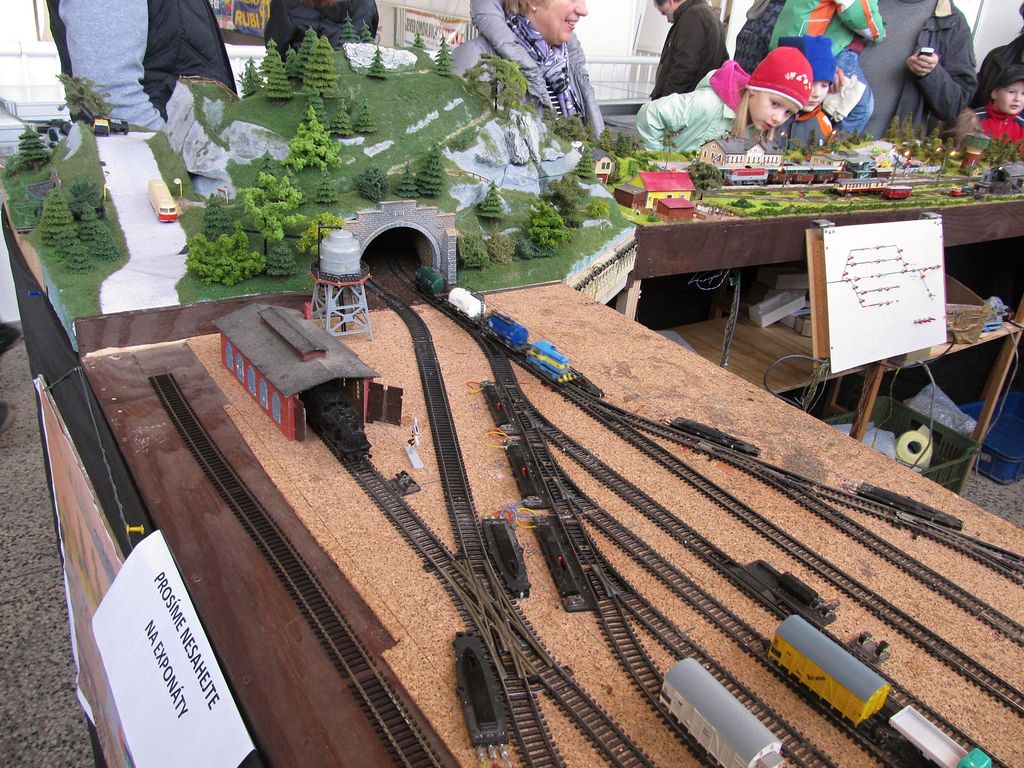 Tyto stránky jsou určeny pro modeláře lodních modelů, ale určitě mnoho z nás buď začínalo, nebo si jen tak pro radost odskočilo i k jiným druhům modelů. Já jsem před mnoha lety postavil menší kolejiště pro svého syna. Protože se toto kolejiště dá celkem snadno přepravovat, již několikrát bylo na této výstavě umístěno. No a když se na kolejišti rozjedou vláčky, rodiče potřebují hodně trpělivosti, protože odtrhnout děti od kolejiště dá práci. A nejen děti. Hodně dotazů padalo také od důchodců. Některé jsem tam zahlédl každý den výstavy.